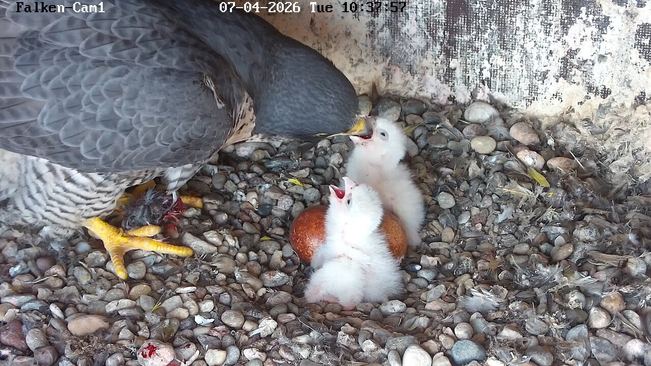 Fellbach. Mit großer Vorfreude hat die Wanderfalken-Community in Fellbach darauf gewartet. An Ostern war es dann so weit. Alizée und Alvar haben Nachwuchs bekommen. Geduldig hatte die Falkendame Alizée auf den vier Eiern ausgeharrt und sie gewärmt. Aus den braun gesprenkelten Eiern sind zwei Küken geschlüpft und sie entwickeln sich prächtig, inzwischen sind sie hell und flauschig. Wann schlüpfen weitere Küken? Der Falkenexperte Friedemann Tewald gibt Antworten.