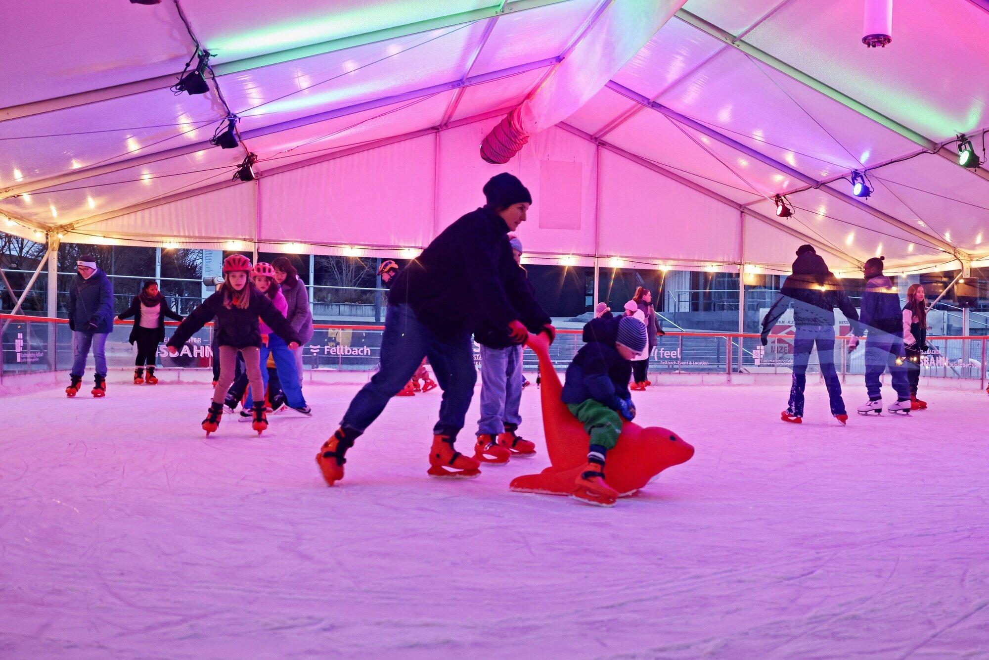 Fellbach. Kurz vor Weihnachten in Fellbach: Gegen vier Uhr geht die Sonne überm Kappelberg unter, es dämmert und die Lichter des Fellbacher Weihnachtsmarkts und des Märchenwalds kommen immer besser zur Geltung, sorgen für vorweihnachtliche Atmosphäre. Unterm weißen Zeltdach bei der Schwabenlandhalle ist Bewegung, schallt Musik, die Leute treffen sich und schnüren die Schlittschuhe. Ein Besuch samt Testfahrt auf der Eisbahn machen klar: Das stimmt auf Winter und Weihnachten