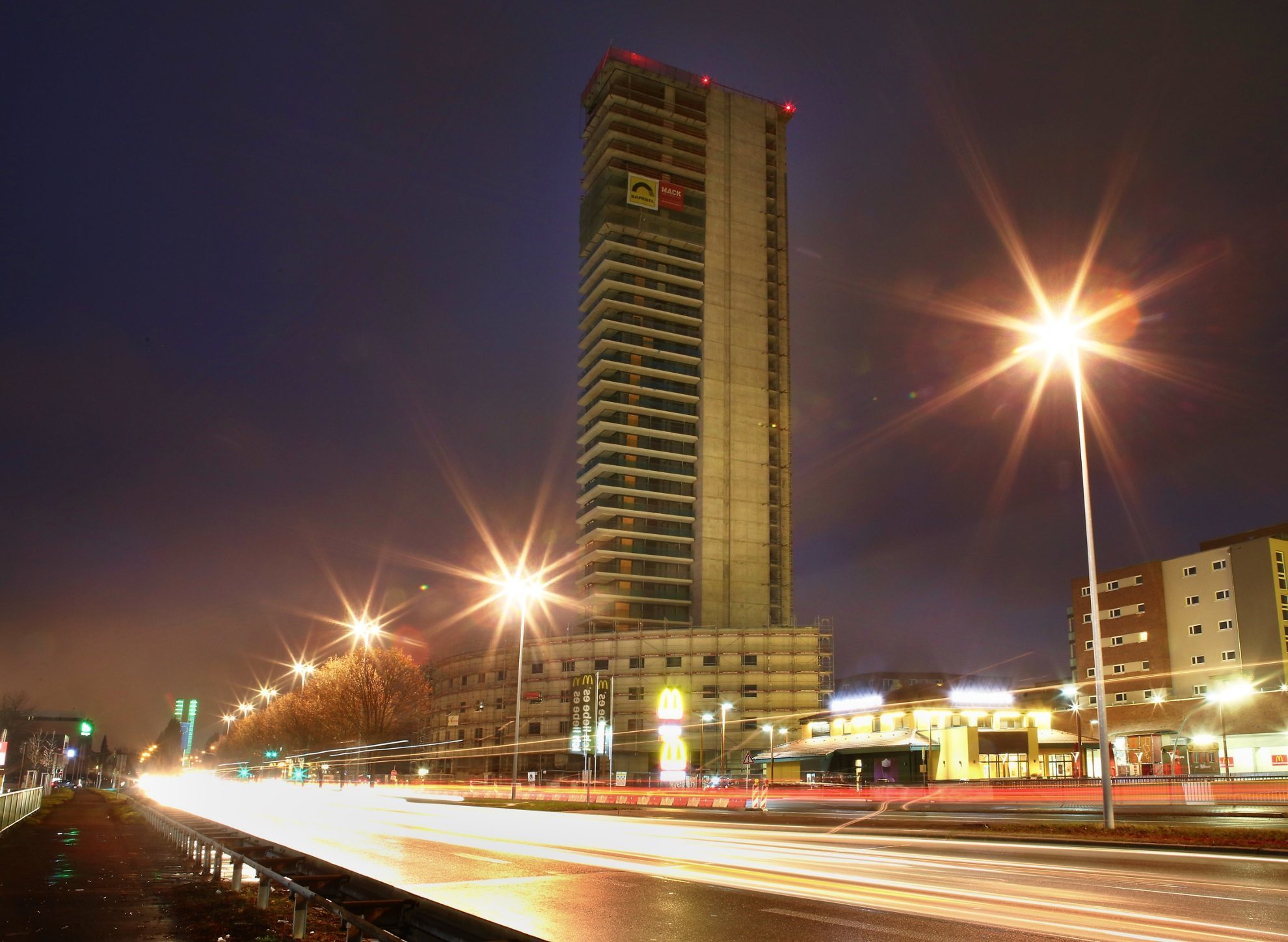 Düstere Stimmung mit Lichtblicken am unfertigen Gewa-Tower. (Archivbild) © Gabriel Habermann