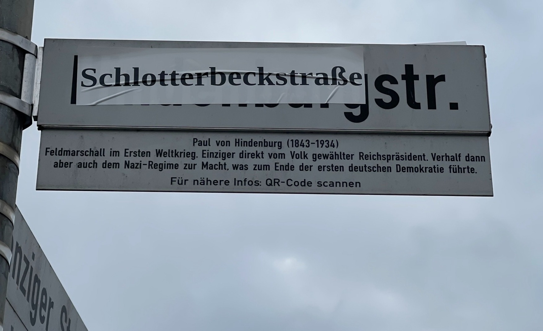In der Hindenburgstraße in Fellbach-Oeffingen haben Unbekannte das Straßenschild beklebt und den Namen Hindenburg überdeckt - offenbar war es eine Aktion der Antifa am Montag, 90 Jahre nachdem der damalige Reichspräsident Paul von Hindenburg am 30. Januar 1933 Adolf Hitler zum Kanzler ernannt hat. Sachschaden ist laut der Stadt Fellbach nicht entstanden. Die Polizei war vor Ort und nahm Personalien auf.