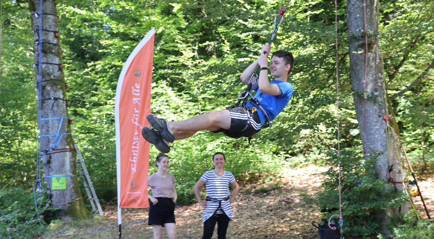 Theresa gefällt es gut am Ebniseeufer. Sie hat sich einige Stationen aus dem Programm von „Ebnisee für alle“ herausgepickt, die interessant klingen. Dank ihrer Betreuerin kann sie trotz ihrer Sehbehinderung kleine Traumfänger und Windräder aus Holz und Wolle basteln, zwischen zwei Bäumen schaukeln, 30 einheimische Wildtiere in einer lappländischen Jurte besichtigen und vieles mehr.