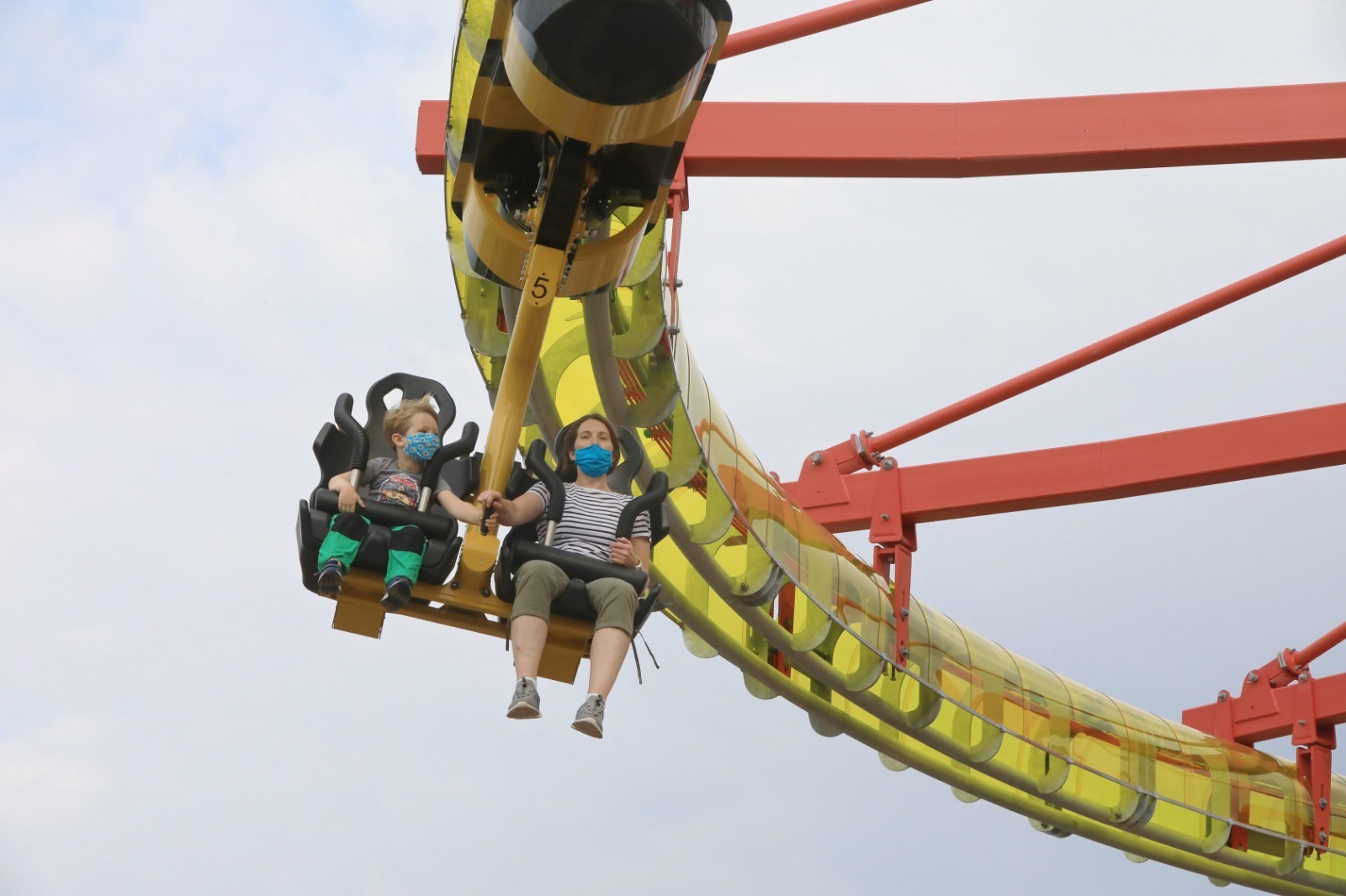 Die Strecke führt einmal um die komplette „Hummel Brummel“-Station, über den Eingang des Parks hinweg, über die Baumwipfel hinweg, mit einem kurzen Abstecher zum „Koiteich“ bis zur