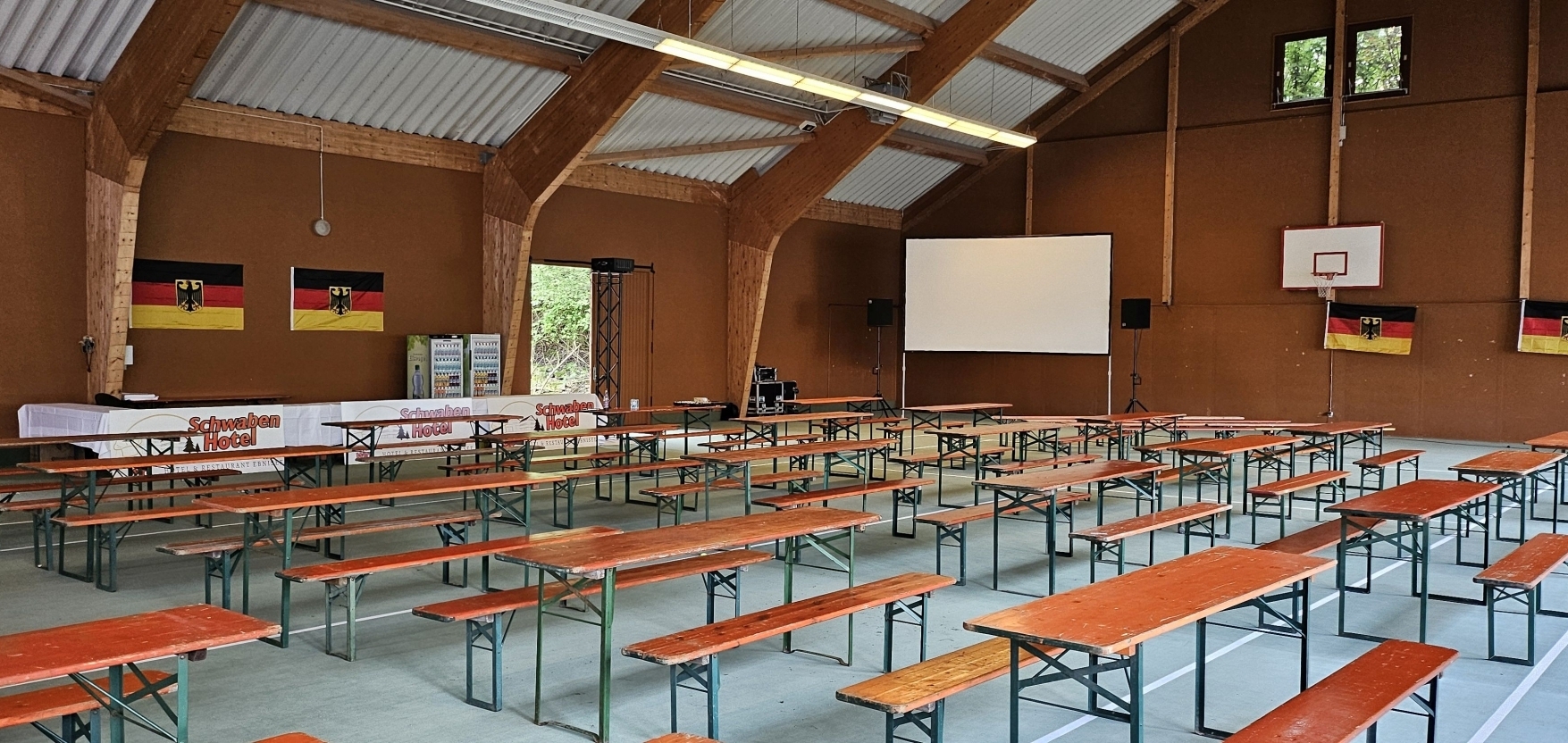 Am Freitag beginnt die Fußball-Europameisterschaft in Deutschland. Die Nationalmannschaft sorgt nach den letzten positiven Ergebnissen wieder für Vorfreude auf die EM im eigenen Land. Das Schwabenhotel Ebnisee in Kaisersbach bietet die Möglichkeit an, die Spiele gemeinsam zu schauen – und lädt zum Public Viewing in der Tennishalle gegenüber vom Hotel.
