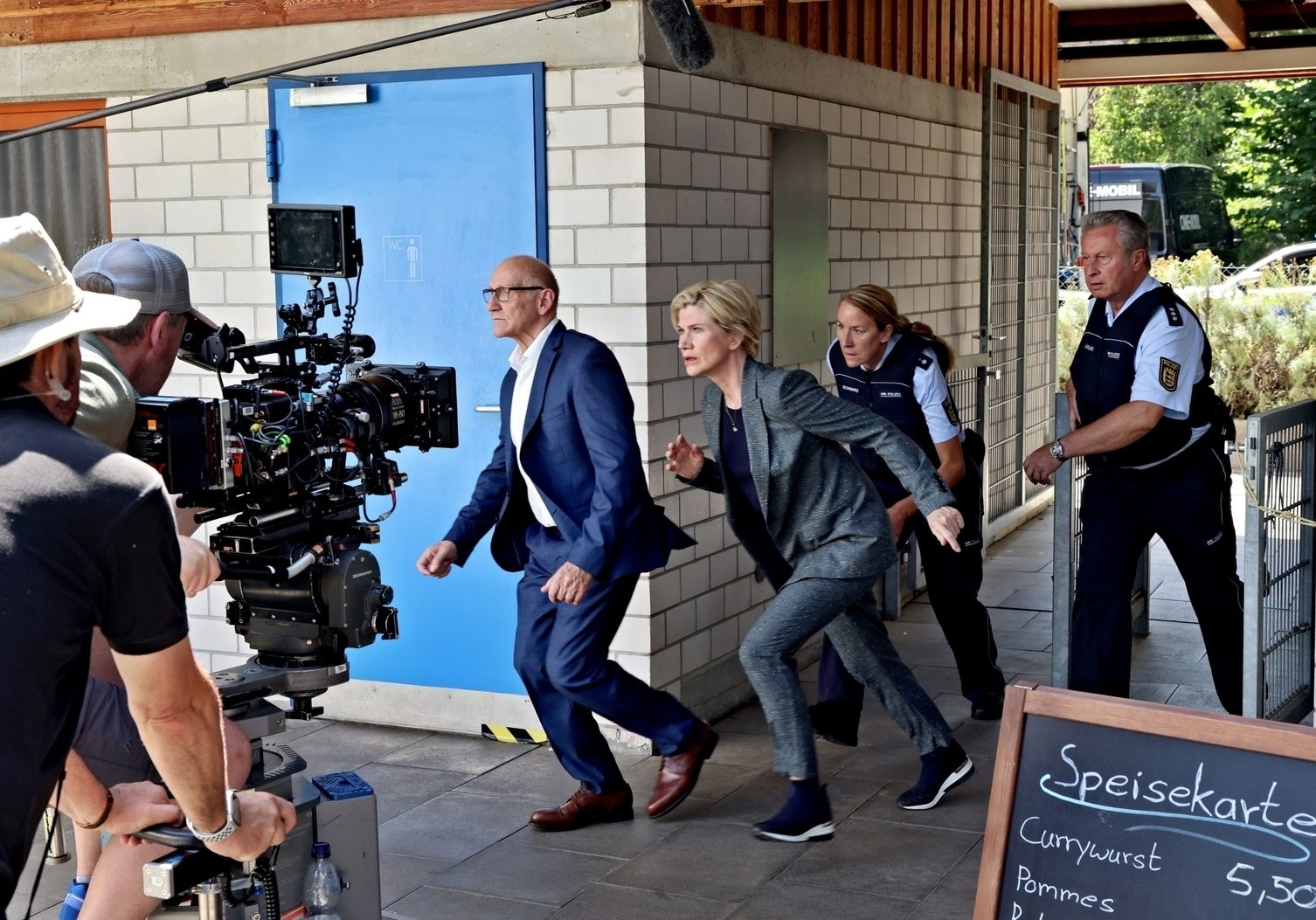 „Achtung Filmaufnahmen“ leuchtet das rote Warndreieck auf dem Parkplatz des Stettener Bädles den Besuchern entgegen. Wer am Montag (29.7) und Dienstag (30.7) im Freibad baden gehen wollte, musste sich vertrösten: Auf dem Gelände war die Crew der „Soko Stuttgart“ unterwegs und filmte Szenen zur 16. Staffel, die ab 3. Oktober um 18 Uhr im ZDF gezeigt wird.