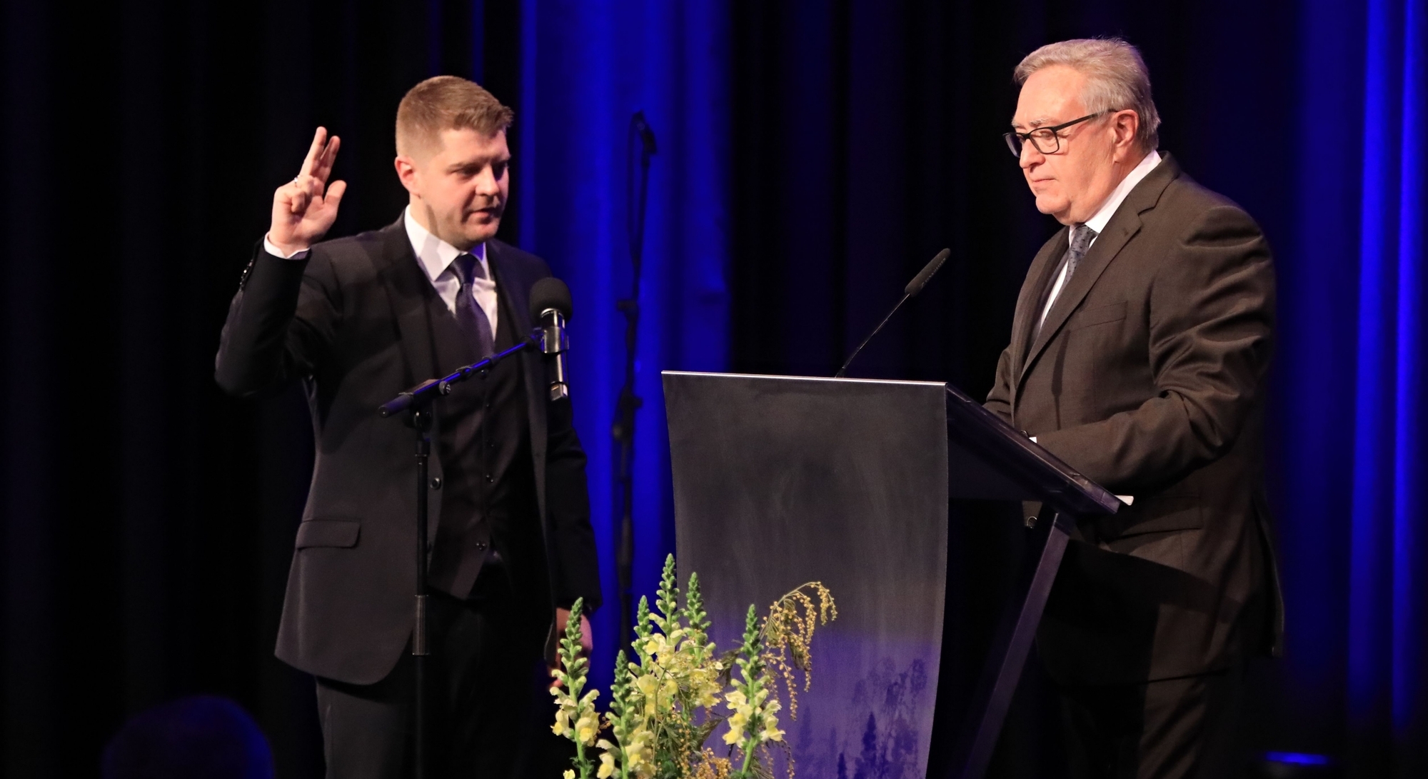 „Er kam, sah und siegte“, zitierte Bauamtsleiter und Technischer Beigeordneter Peter Mauch den römischen Staatsmann Julius Cäsar, nachdem er die öffentliche Gemeinderatssitzung im Bürgerhaus eröffnete. Doch trotz „kurzem und prägnanten Wahlkampf“, so Peter Mauch, hatte der Bürgermeister von Kernen lange auf diesen Tag warten müssen: Fast zweieinhalb Jahre nach der Wahl am 29. September 2019 wurde Benedikt Paulowitsch nun offiziell ins Amt eingesetzt.
