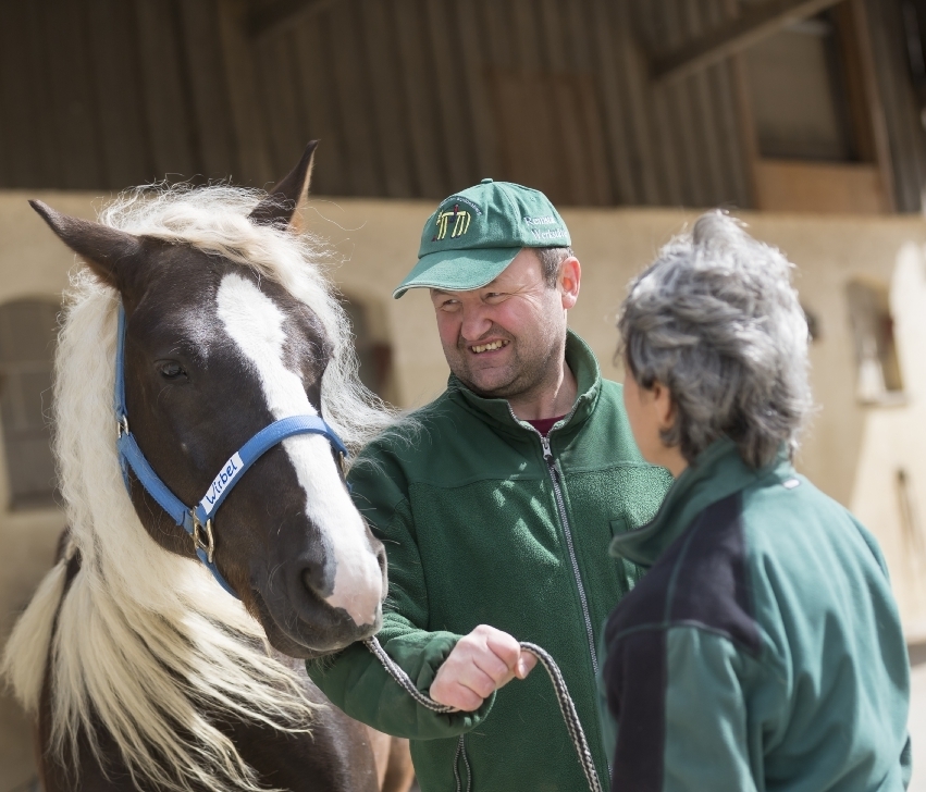 Marco (28) ist begeistert, teilt der Förderverein Pferdehof am Schlossberg in einer Pressemitteilung mit. Endlich könne der 28-Jährige regelmäßig mit seinem geliebten „Wirbel“ zusammen sein. Wirbel ist ein gestandener Schwarzwälder – eines von derzeit zehn Therapiepferden, die im Pferdehof der Diakonie in Stetten ihre heilpädagogische Arbeit verrichten.