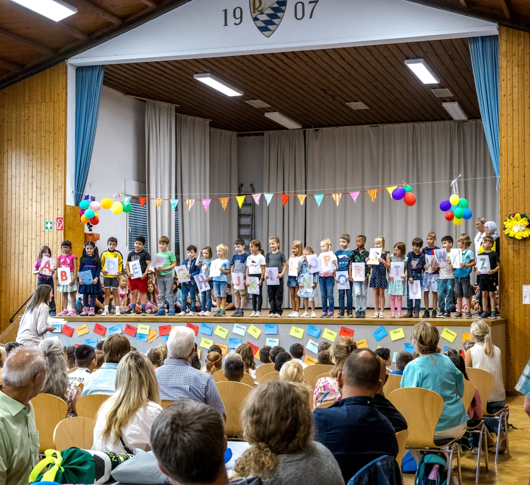 Um 9.30 Uhr versammelten sich 71 Erstklässler und deren Eltern und Familienangehörige in der Turnhalle in Rommelshausen, dort hat die Einschulung der Haldenschule