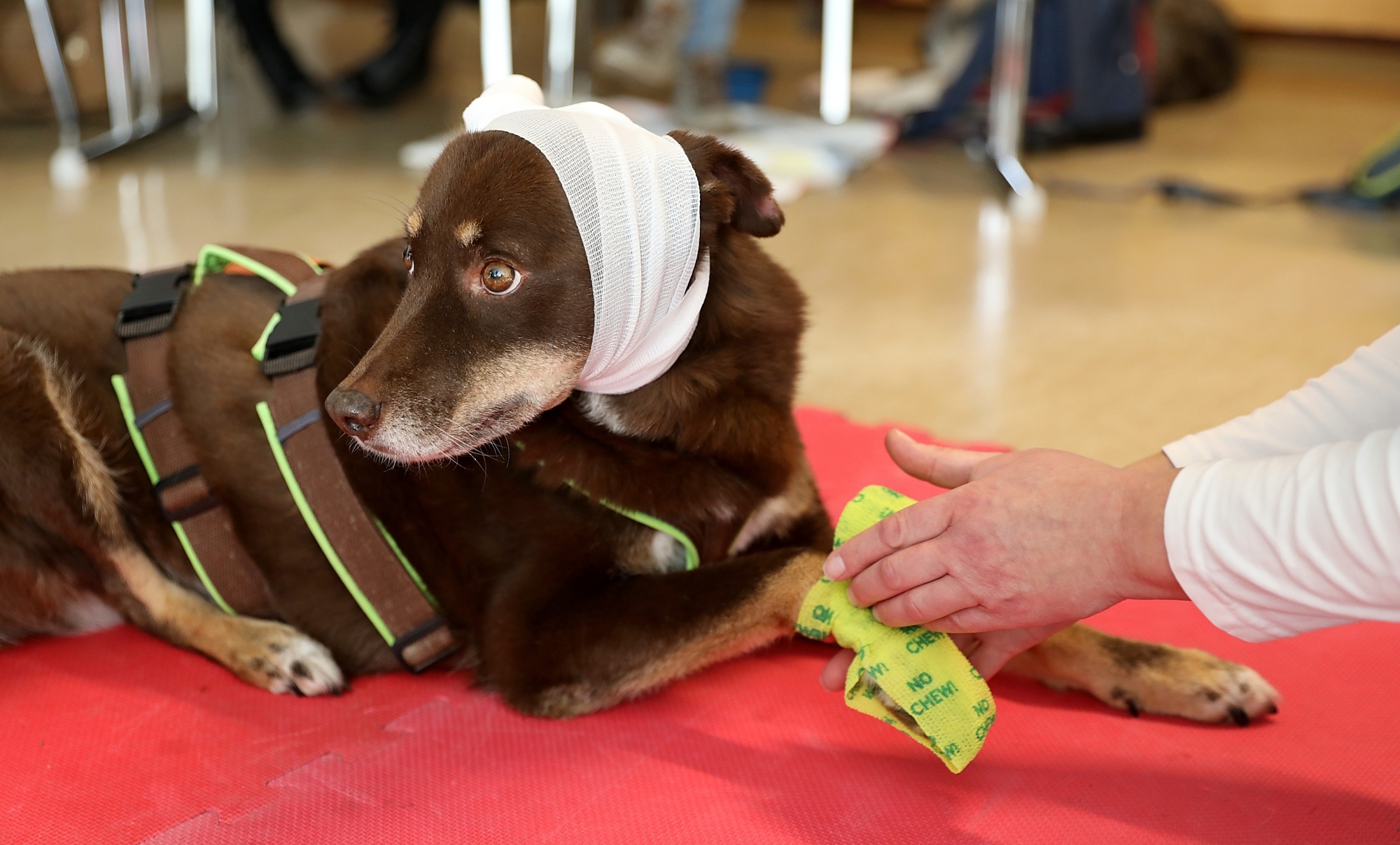 Sie erschnüffeln Spuren, begleiten Blinde oder suchen und retten vermisste Personen: Hunde sind nicht nur fester Bestandteil vieler Familien, sondern unterstützen den Menschen in den unterschiedlichsten Lebensbereichen. In manchen Situationen aber sind sie es, die selbst Hilfe benötigen. Von Überhitzung, Unterkühlung über Wunden bis hin zur Bewusstlosigkeit: Ilona Steichele ist Ausbilderin für Mensch und Hund beim Deutschen Roten Kreuz (DRK) Kernen und zeigt Hundebesitzern im Kurs „Erste