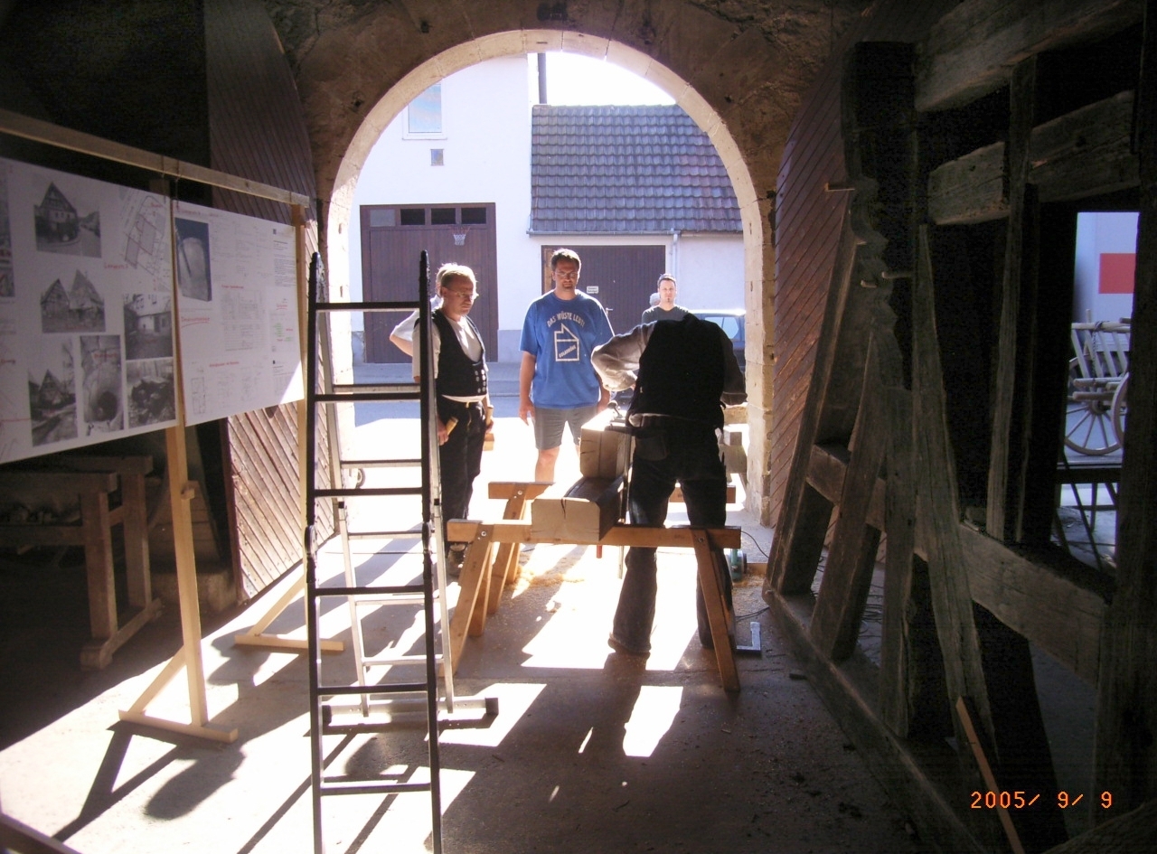 An der Kläranlage Krättenbach findet am 3. September der Fachwerktag des Heimatvereins Kernen statt. Der Tag wurde im Jahr 2005 zum ersten Mal in der Glockenkelter veranstaltet, der Abriss eines alten Fachwerkgebäudes, das nachweislich aus dem Jahr 1597 stammte, wurde damals zum Anlass gewählt. Alte Hölzer aus dem Giebel des Hauses konnten erhalten werden - der Heimatverein möchte diese nun aufstellen und bei der Gelegenheit über die Ausbildung Zimmerer/Zimmerin