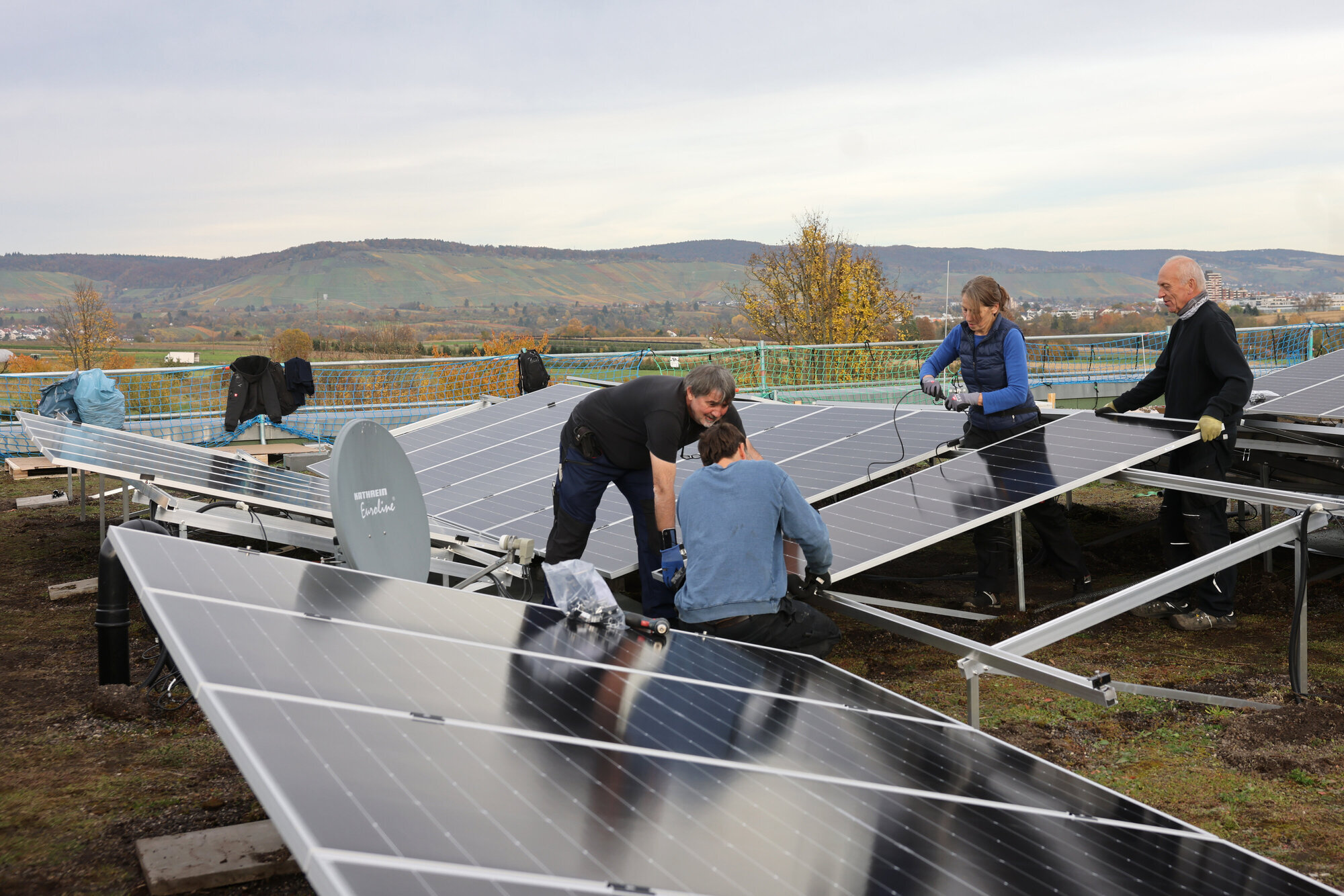 Kernen. Mit dem Kran schweben große Glas-Solarmodule auf das Dach des Sportpunkts in Kerne n ein. Hier gibt es schon seit einigen Jahren eine kleinere Anlage, gemeinsam mit den neuen Modulen soll künftig - im Idealfall - der gesamte Strombedarf des Gebäudes durch Sonnenenergie abgedeckt werden. Auf dem Dach wartet schon die Firma Futschik. Das Stettener Familienunternehmen gibt es bereits seit 70 Jahren - und stellt sich zunehmend breiter auf.