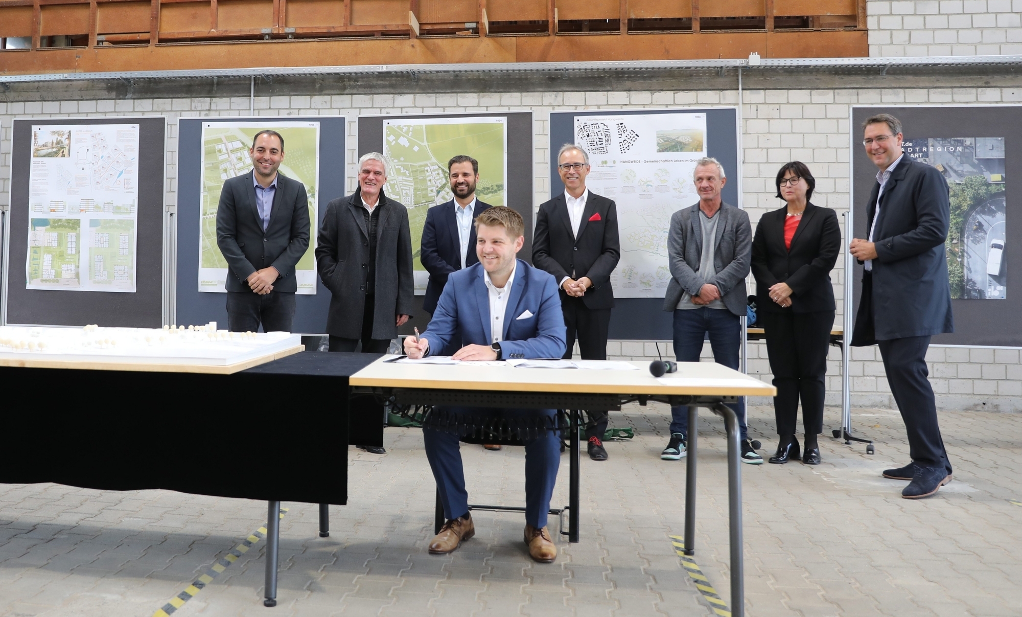 Kaum dass die Ausstellung der Ergebnisse des städtebaulichen Wettbewerbs „Zukunftsprojekt Hangweide“ am Mittwoch, 6. Oktober, nach rund vier Wochen ihre Türen für die Besucher geschlossen hatte, knallten in der „Eventscheune“ auch schon die Sektkorken.