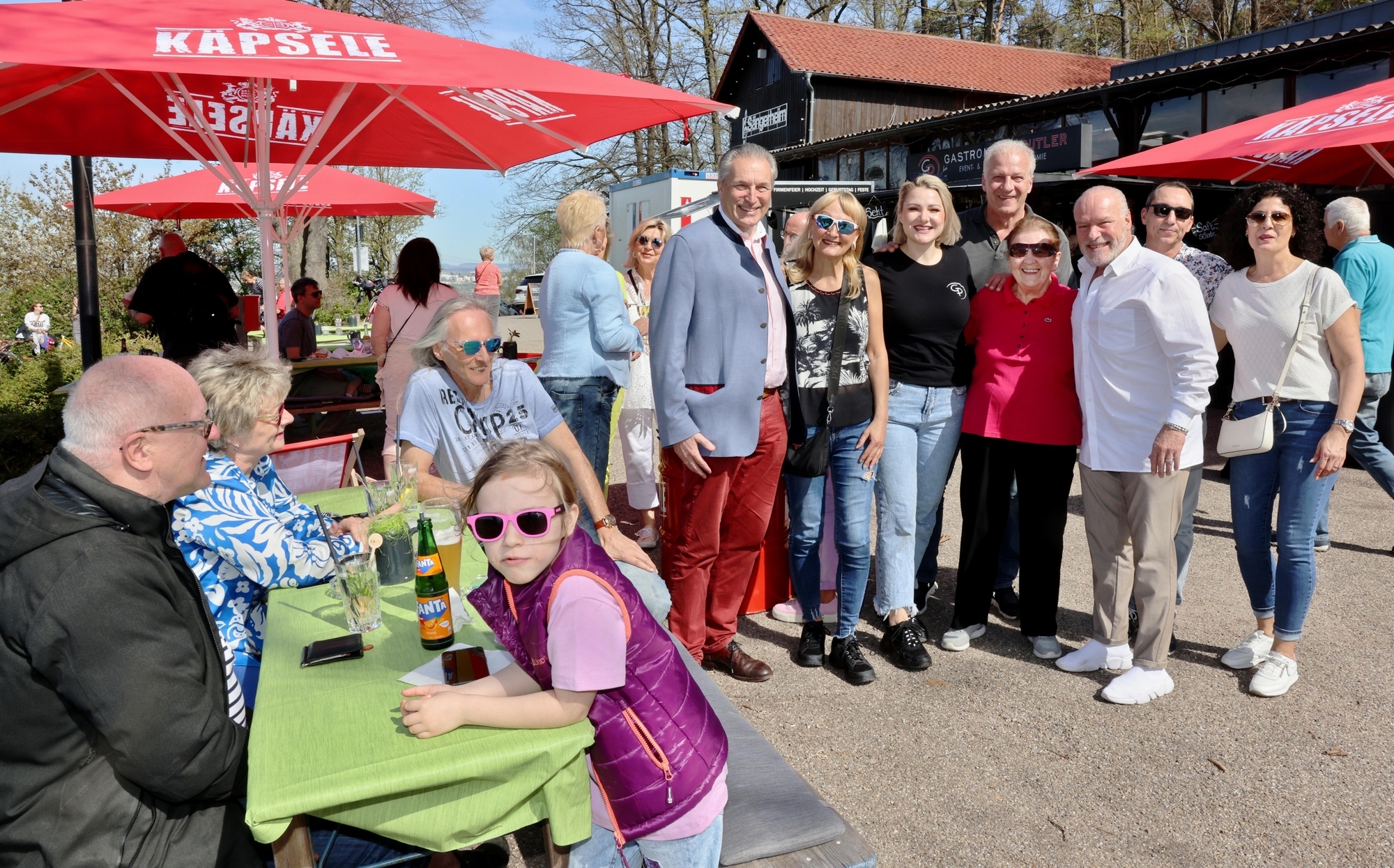 Die Sonne strahlte am Samstagnachmittag, 6. April 2024, mit Foodtruck-Betreiberin Romy Putler um die Wette. „Es war die richtige Entscheidung, heute anzufangen“, sagt sie mit Blick auf die unzähligen Menschen, die die Weinberge oberhalb von Stetten, Putlers „Lieblingsplatz“, erklommen haben. Da Romy Putler nicht nur Gastro-, sondern durch ihr Studium auch Marketing-Profi ist, hatte sie die Sache nicht allein in die Hände des wenig beeinflussbaren Wettergeschehens legen wollen. „Wir haben