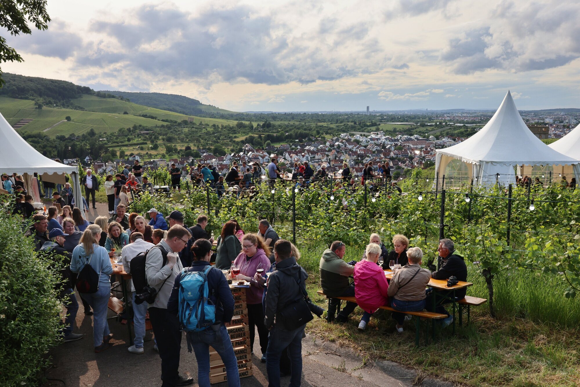 Kernen. Pfingstsamstag in Stetten, der kulinarische Weinweg startet um 16 Uhr – und es regnet. Wechselhaftes Wetter ist angekündigt fürs Wochenende. Und wieder – wie beim Bürgerfest in Kernen am Sonntag zuvor – geht der Blick zum Himmel und auf die Wetter-App. Doch die Anbieter der trinkbaren und essbaren Köstlichkeiten befürchten keinen Abbruch, selbst als am Sonntag der Wind heftig bläst und die Gäste sich am liebsten in den Zelten aufhalten. „Wir sind seit 2018 dabei und