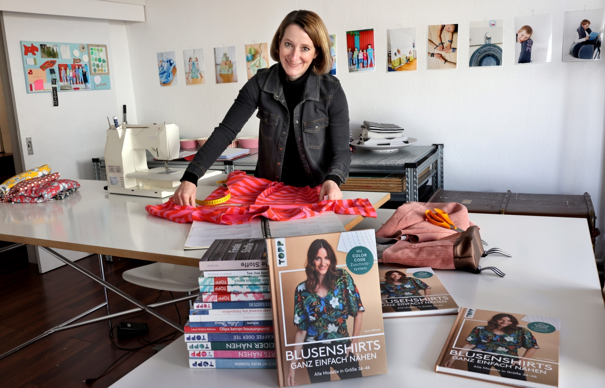 „Blusenshirts ganz einfach nähen“, lautet der Titel des neuen Buchs von Nähexpertin Laura Wilhelm aus Stetten. Es ist Mitte Januar beim Frechverlag erschienen. Darin zu finden sind unterschiedliche Nähanleitungen für Damenoberteile in den Größen 34 bis 46. Das Buch sei eine Auftragsarbeit des Verlags gewesen, so Wilhelm, „weil seine Vorgänger so gut liefen“, verrät sie und lächelt.