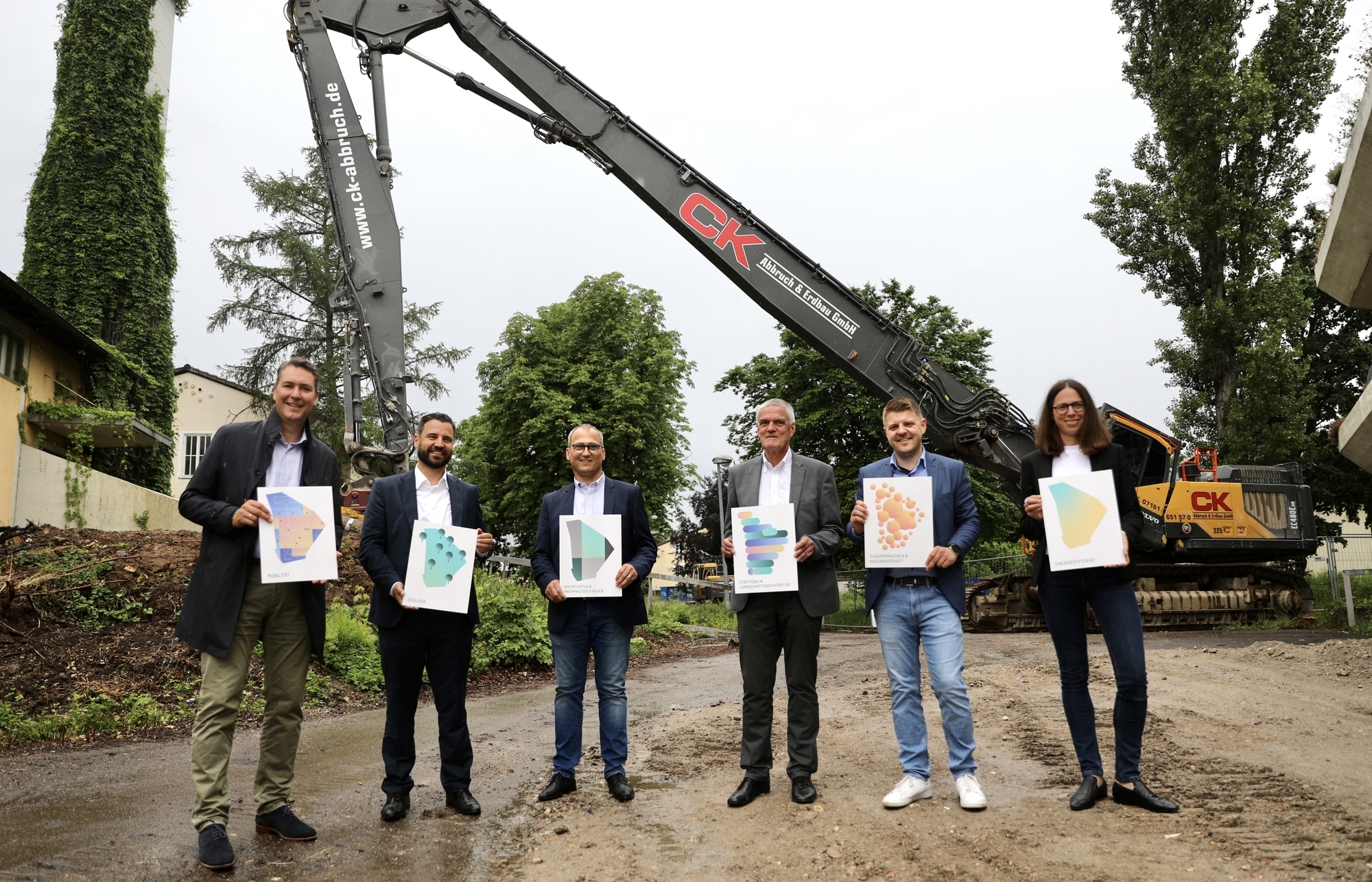 Manche Fenster und Türen sind mit Holzplatten zugenagelt, die Außenfassade einiger Gebäude mit Graffiti-Schriftzügen besprüht. Dort, wo einst Menschen mit Behinderung tagein, tagaus gelebt haben, soll wieder neues Leben einziehen. Für das 48 Millionen Euro teure Zukunftsprojekt „Hangweide“ auf dem Gelände des ehemaligen Diakonie-Dorfs ist bei einem Pressetermin offiziell der Startschuss für den Baustart gefallen – die Abbrucharbeiten beginnen.