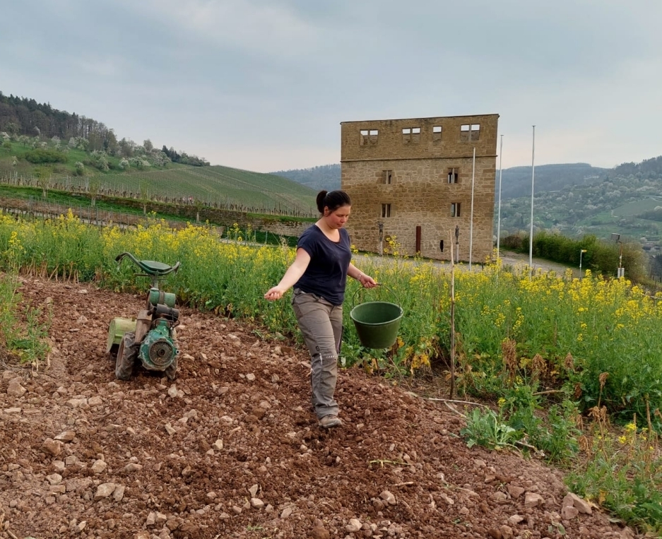 „Die Witterung der letzten Tage war optimal zum Keimen für das Saatgut“, teilt Stefanie Karpf vom Weingut Zimmer mit. „Nun hoffen wir, dass die jungen Pflanzen gut wachsen und bald blau blühen. Der Raps hat schon gelbe Blüten.“ Der Anblick des Friedenssymbols werde