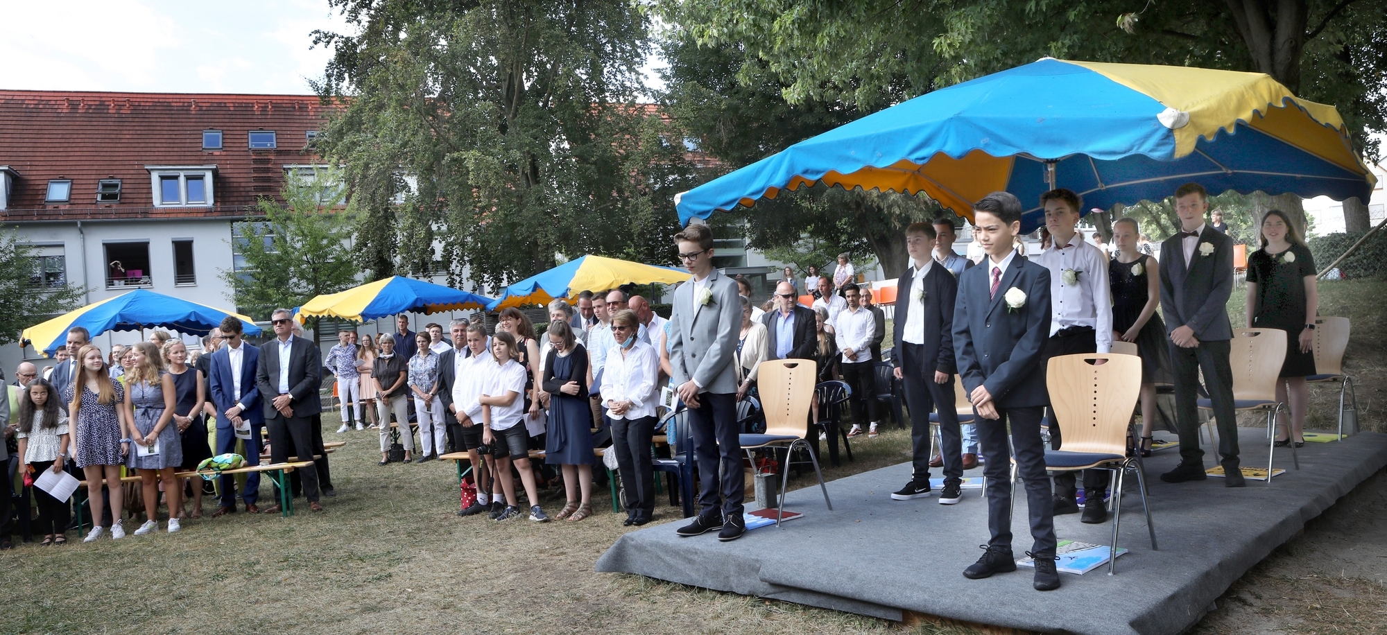 Wenn die Feier allen Beteiligten so gut gefallen hat, ist die Open-Air-Konfirmation dann nicht ein Modell für die Zukunft? „Ich weiß nicht“, sagt Pfarrer Wanzeck, „es ist schon ein Mega-Aufwand. Viele fänden es cool, aber es ist auch eine Frage der Ressourcen.“ Viele Freiwillige hätten dieses Jahr beim Aufbau und der Organisation geholfen. „Außerdem war das eine echte Nervengeschichte. Ich habe eine Woche lang jeden Tag fünfmal auf die Wetter-App geschaut.“