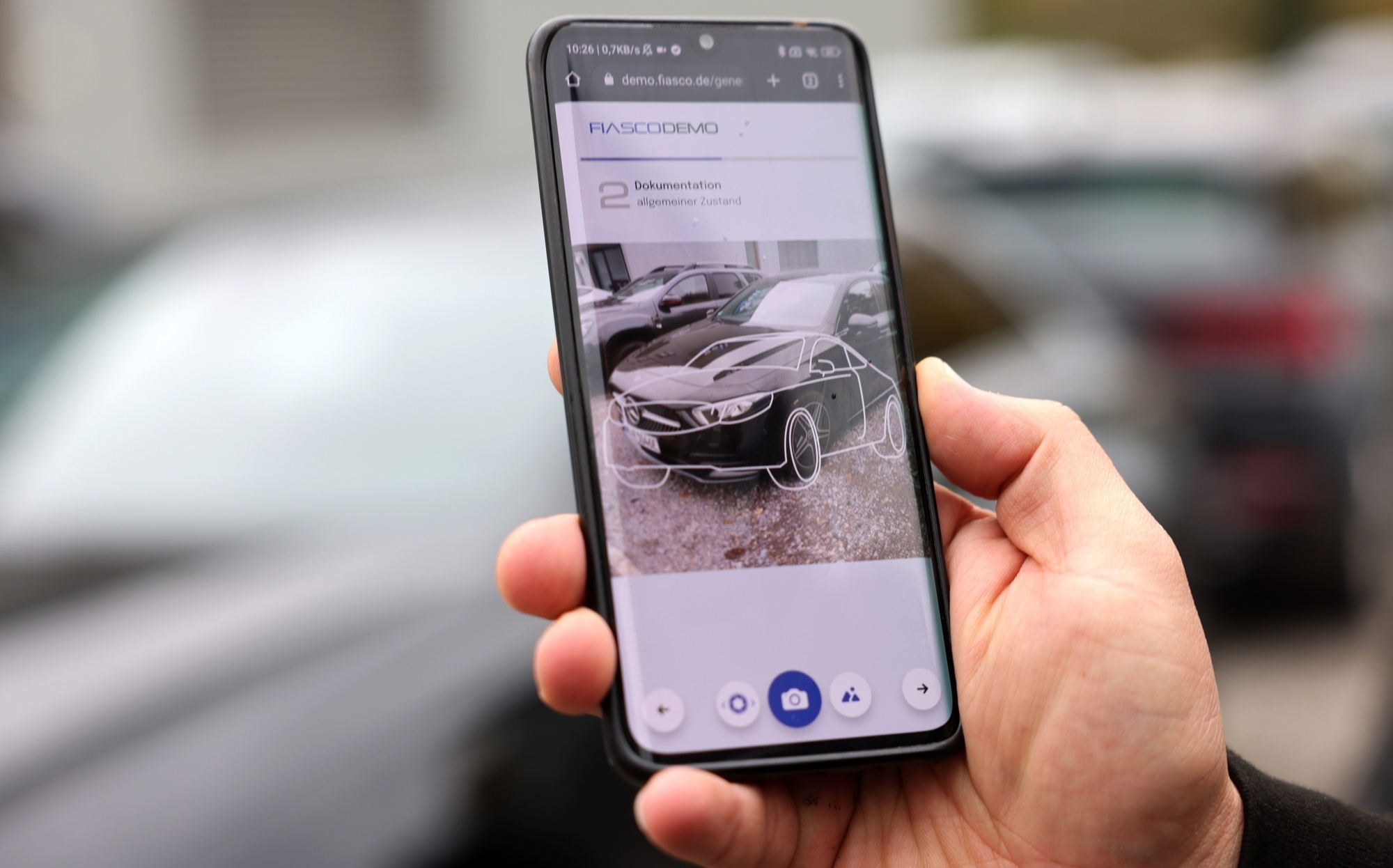 Önder Aslan aus Kernen richtet die Kamera seines Smartphones auf sein geparktes Auto. Auf dem Bildschirm läuft die von ihm und seinem Geschäftsführerkollegen Harun Coskun entwickelte App „Fiasco“, die mit der Hilfe von künstlicher Intelligenz (KI) Schäden an Fahrzeugen erfassen kann. Eine Grafik auf dem Bildschirm gibt ihm einen Anhaltspunkt, in welchem Winkel und aus welcher Entfernung er die Fotos von seinem Auto aufnehmen soll.