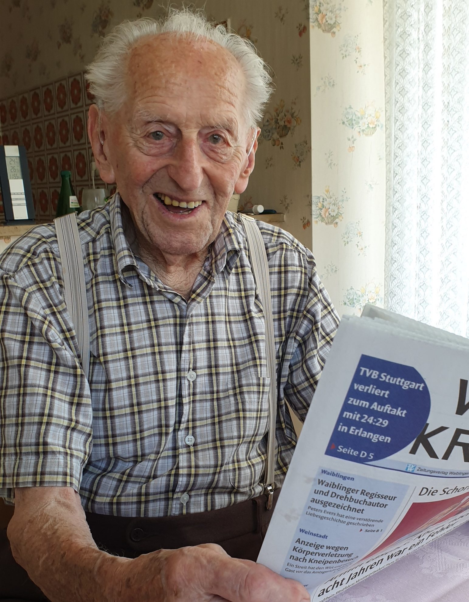 Dass er einmal so alt werden würde, sagt Karl Haidle, „das hätte ich nie gedacht“. Er sitzt an seinem Küchentisch, vor ihm liegt die aktuelle Ausgabe der Waiblinger Kreiszeitung, daneben seine Lesebrille. Karl Haidle wohnt in der Pommerstraße in seiner eigenen Wohnung. Noch jeden Morgen steht er selbstständig auf, macht sich Frühstück, liest nach, was sich so tut in der Region. Besonders interessiert sich der ehemalige Wengerter für Berichte über hiesige Weingüter oder die Lage der Remstalkellerei, bei der er seine Trauben früher abgeliefert hat.