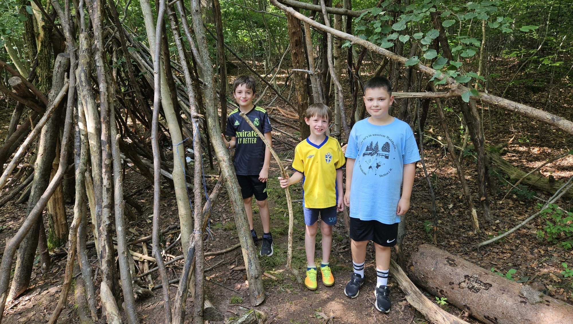 „Passwort?“, ein Junge im Fußballtrikot versperrt den Trampelpfad und reckt vor seinem Betreuer selbstbewusst das Kinn in die Höhe. Der 19-jährige Janne lässt sich davon nicht aus der Ruhe bringen. Er ist früher selbst ein Waldheim-Kind gewesen und weiß genau, auf was es ankommt, damit die Teilnehmer eine richtig gute Zeit haben. Das Konzept ist ganz klassisch und kommt komplett ohne digitale Unterhaltung aus. Trotzdem ist es bei den Familien in Stetten so beliebt, dass die Organisation