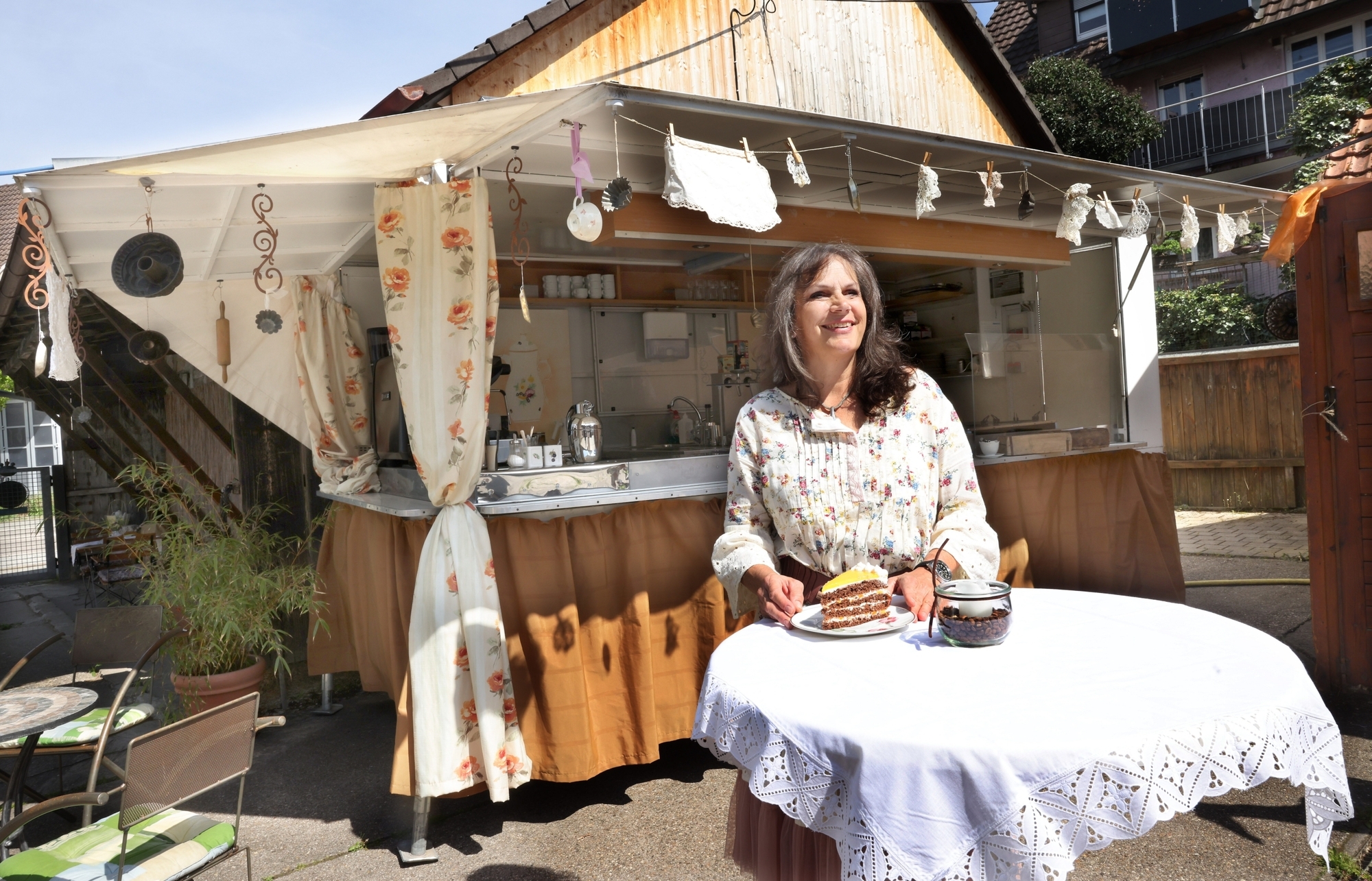 Der Duft von frisch aufgebrühtem Kaffee zieht durch den Hinterhof der Winnender Straße 23 in Korb, die Sonne scheint warm auf den Asphalt. Um einige Tische herum stehen Stühle – bunte, antike, moderne, jeder einzelne ist ein Unikat. Andrea Tramer hat den idyllischen Hof zu einer kleinen Oase gestaltet, wer hier einkehrt, kann den Alltagsstress schnell vergessen.