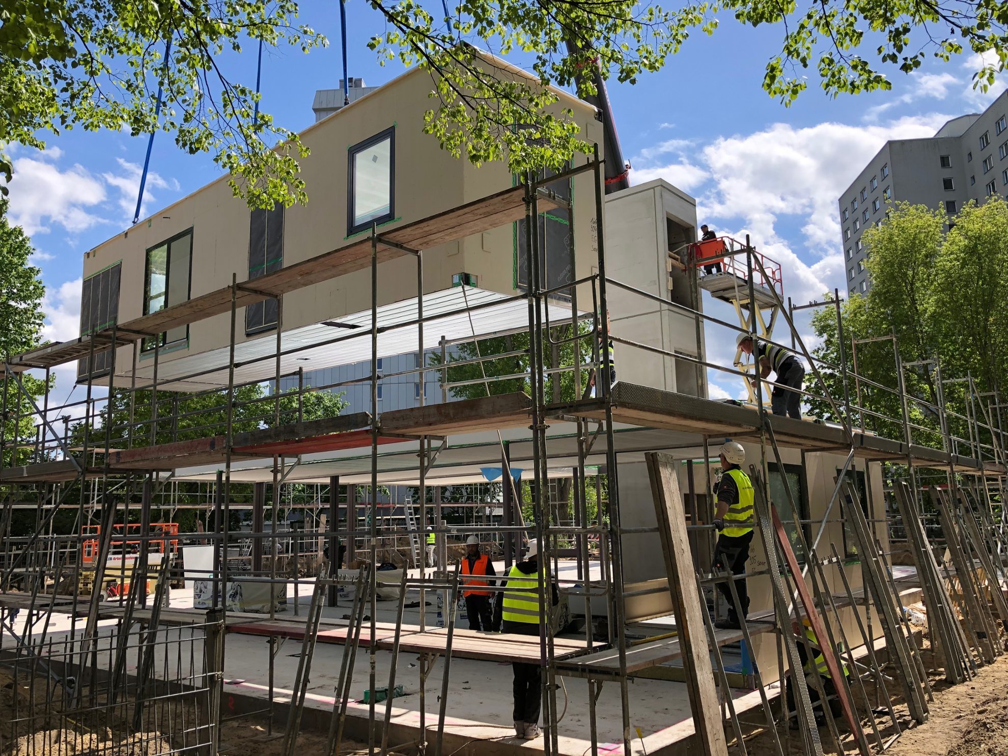 So sieht es aus, wenn ein Modul auf der Baustelle platziert wird_0