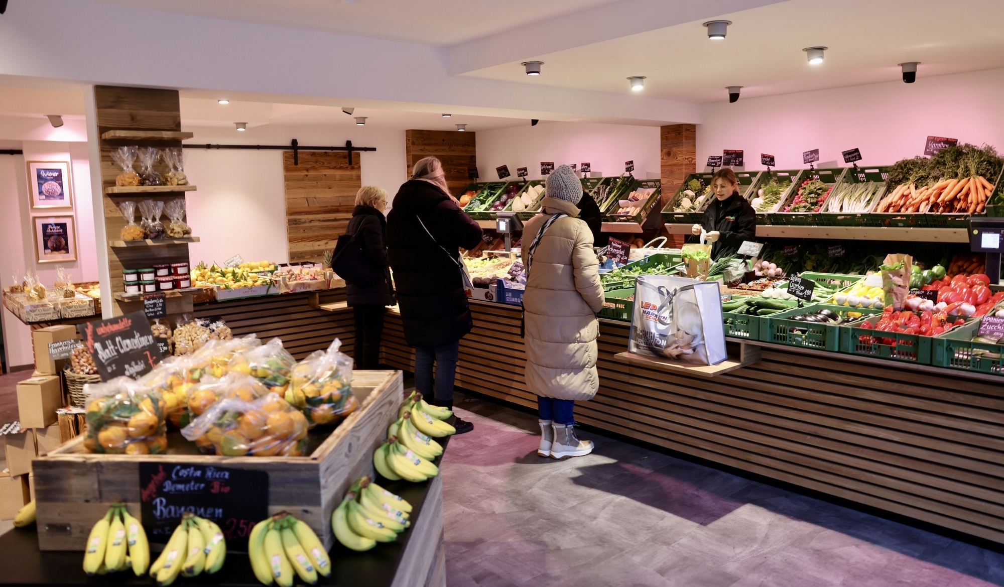 Die Theke der Metzgerei Schäfer, mit der sich der Hofmarkt Schmid bis vor rund einem Jahr noch die Räume am Seeplatz geteilt hat, ist verschwunden. Eine neue automatische Schiebetür öffnet sich für die Kunden, der Verkaufsraum erstrahlt jetzt in rustikalem Schick mit Alt- und Naturholzelementen, einer Kaffeeecke mit Stehtisch und künstlerisch an der Wand drapierten Ananas. Einige der Kunden, die zum ersten Mal seit der Neueröffnung in den Laden kommen, staunen nicht schlecht. Auch bei den