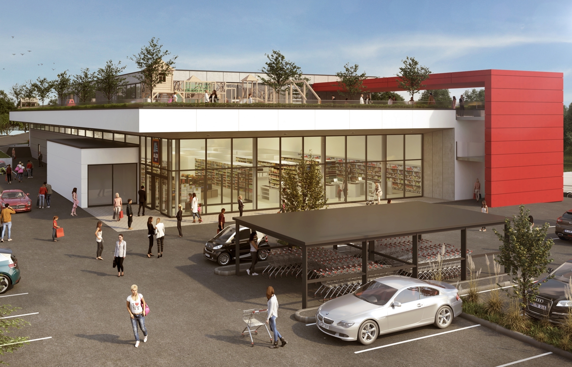 Aldi baut – einen neuen Markt anstelle des bisherigen und auf dem Dach eine Kita, in der die Gemeinde Leutenbach, die dort die Räume mietet, dringend benötigte Betreuungsplätze anbietet. Ein, im heutigen Slang, „Win-Win-Deal“. Die Kette bekommt zusätzliche Einnahmen durch die zusätzliche Nutzung einer Fläche, die ihr eh gehört, und die Kommune muss nicht anderswo bauen und, was in dem Fall auch noch erforderlich gewesen wäre, erst mal ein geeignetes Grundstück dafür finden und es