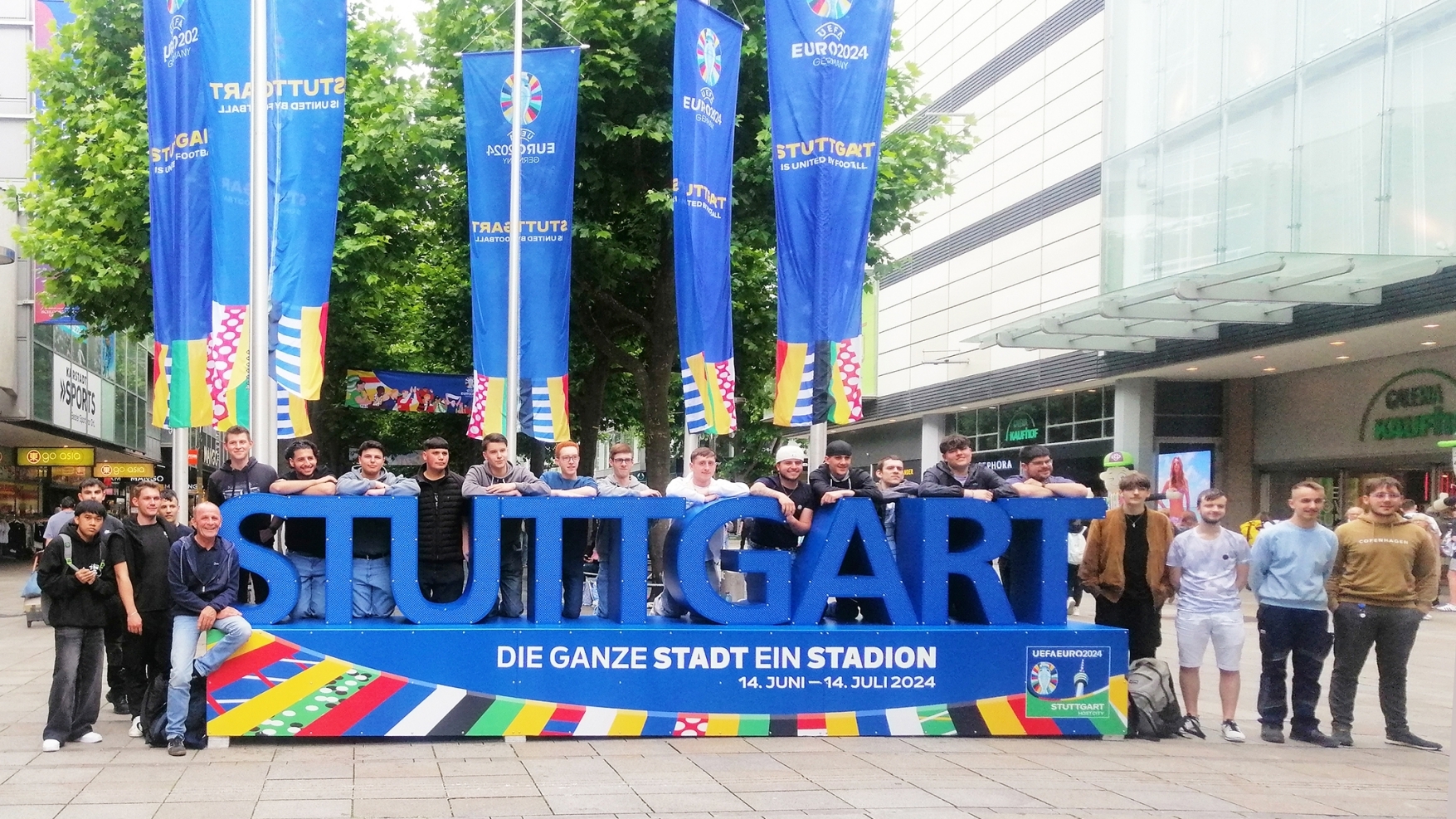 Gäste aus ganz Europa, die in Stuttgart zu Besuch sind, werden von einem überdimensionalen Schriftzug auf der Königstraße begrüßt. „Stuttgart“ steht dort in großen Lettern, „Die ganze Stadt ein Stadion“ in kleineren Buchstaben darunter. Das beliebte Fotomotiv haben Auszubildende von H.P. Kaysser in Nellmersbach anlässlich der EM gefertigt. Wie ist es dazu gekommen?