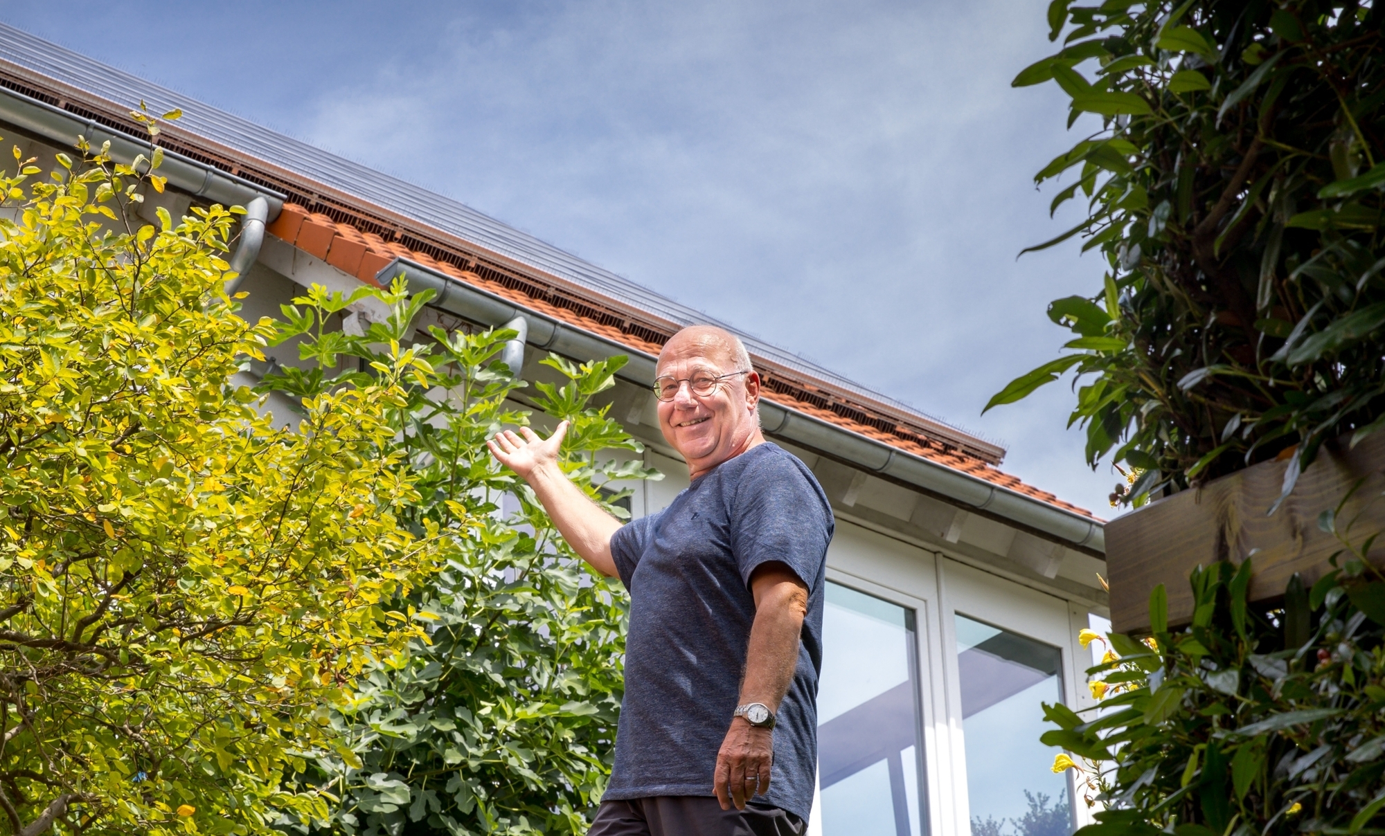 Einer, der die Förderung von Dach-PV-Anlagen durch die Gemeinde genutzt hat, und zwar ganz schnell, ist Heinz-Dieter Oldenbürger. Er wohnt mit seiner Frau an der Hauptstraße, auf einem Grundstück mit herrlichem Garten und in einem kaum weniger schönen Haus. Es ist ähnlich wie an der Ludwigsburger Straße in Schwaikheim: Wer die vielbefahrene Achse nur vom Durchfahren kennt, würde nie vermuten, dass sich nur wenige Meter davon entfernt geradezu ein Paradies erstreckt. Der Unterschied ist nur,