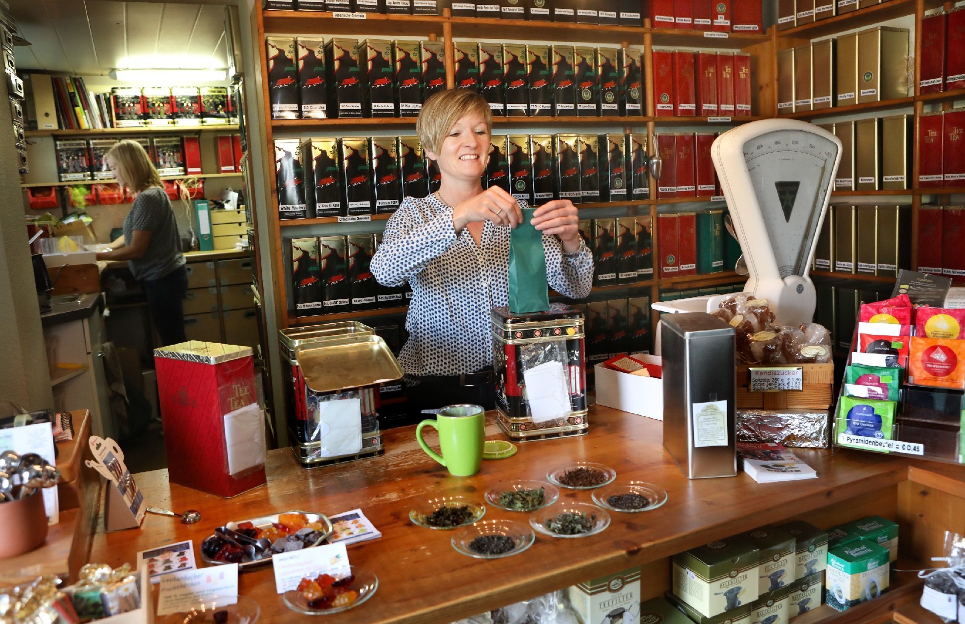 Bevor ein Tee ins Verkaufsregal kommt, wird er verkostet. Ihre Kollegin Heike Savoir hat verstärkt ein Augenmerk auf Früchte- und Kräuterteesorten gesetzt. So ergänzen sich die beiden. „Ich bin schon immer gerne durch Teeläden geschlendert“, sagt sie.