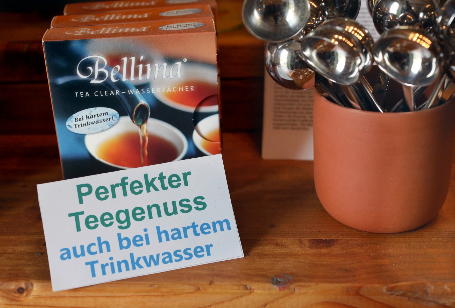 Die Tischfilter sind mittlerweile recht gut. Alternativ könnte man auch Plättchen verwenden, die in den Wasserkocher gegeben werden – beides Mittel, wie man Hahnenwasser zu Hause nachträglich entkalken kann. Besonders spielt die Wasserhärte bei der Zubereitung von Grüntee und Schwarztee eine Rolle, erklärt Regina Feiling, die von ihrem Umfeld Ina genannt wird.