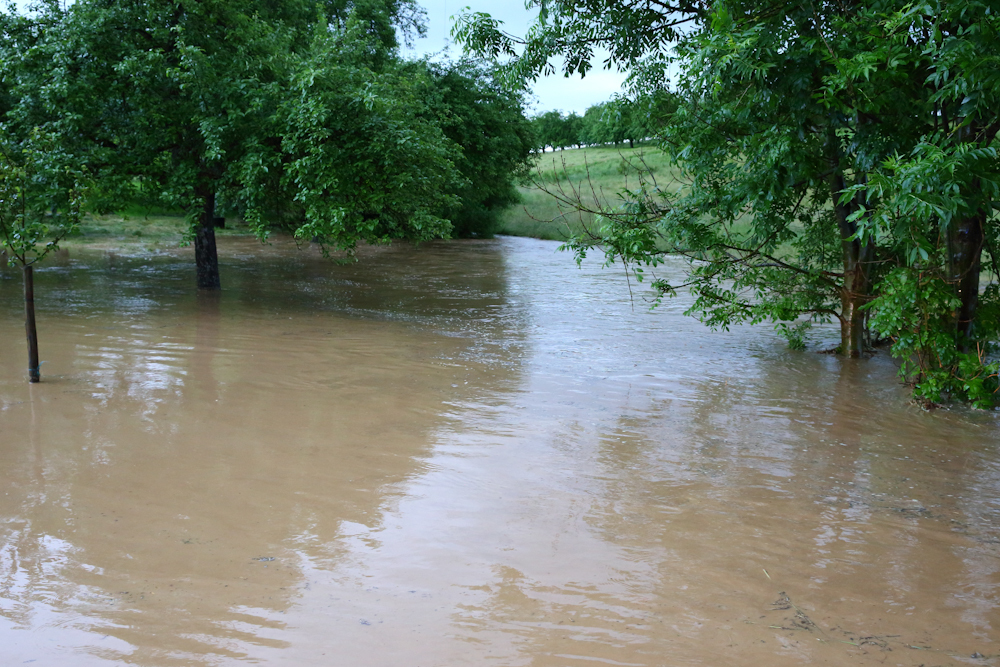Zwar ist der Buchenbach angestiegen, sowohl beim Pegel als auch in der Fließgeschwindigkeit, aber noch liegt er brav in seinem Bett. Anders dagegen der Höllachbach und der Lerchengraben. Denen haben die angrenzenden Felder und Wiesen so viel Oberflächenwasser abgegeben, dass sie am Dienstag gegen 20 Uhr die Straße zwischen den beiden Teilorten fluteten und die Feuerwehr sperren und abpumpen musste. Der Höllachbach kommt von Nellmersbach, fließt durch den nach ihm benannten Landschaftpark, entlang der Burgstaller Straße, und kreuzt nahe der Rems-Murr-Halle die Straße am Leutenbacher Ortsrand beziehungsweise wird unter ihr durchgeführt. Der Lerchengraben kommt bei der S-Kurve zwischen den beiden Ort, nahe dem Abzweig zur Putenfarm Lämmle, herunter.