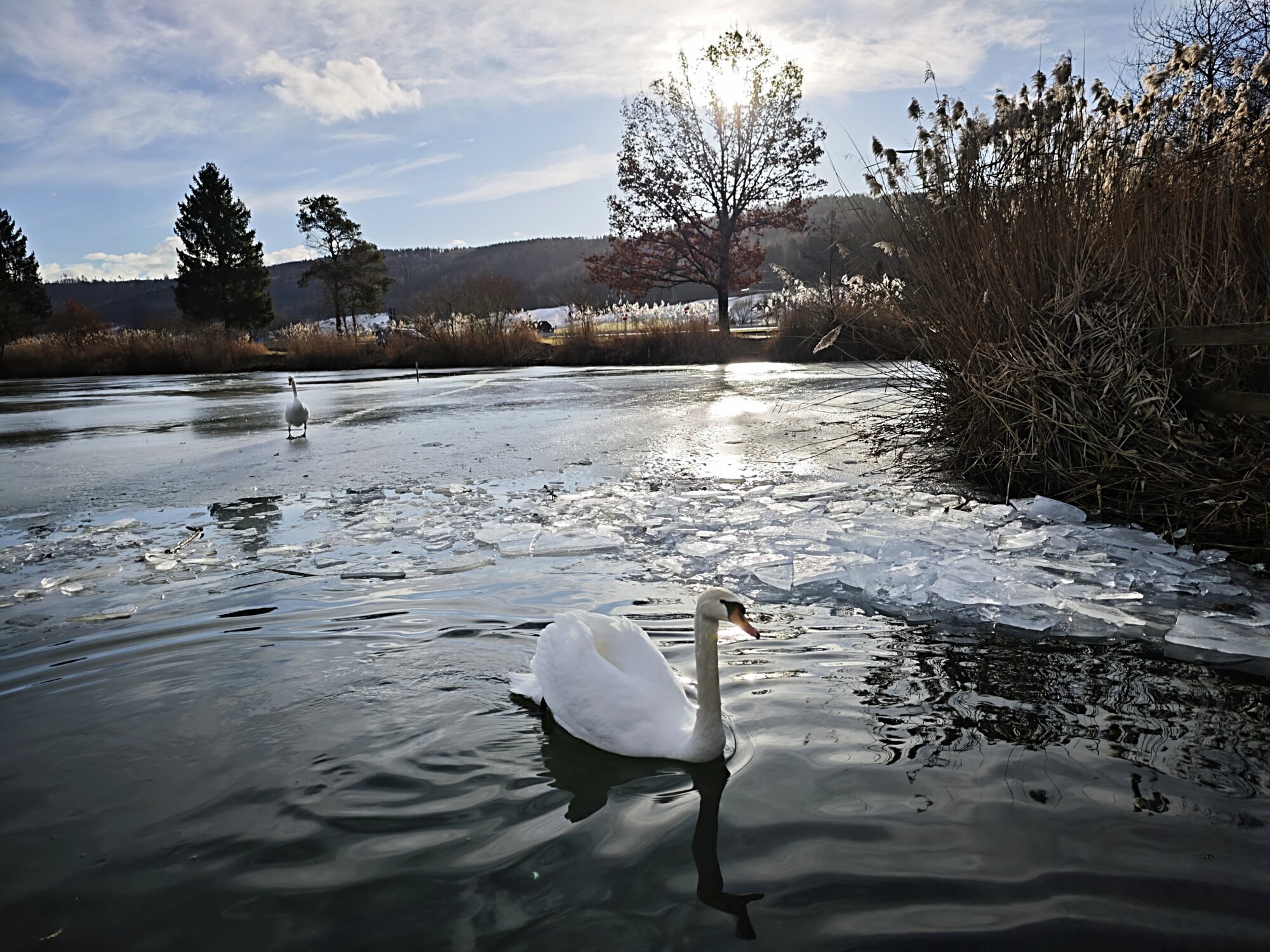 Plüderhausen. Knackig kalt war es in den vergangenen Tagen immer wieder. Und das ist auch am See in Plüderhausen nicht spurlos vorübergegangen. Erst war es nur eine zarte Eisschicht, die aber von Tag zu Tag, von frostiger Nacht zu Nacht immer dicker wurde. Bis sich die ersten Mutigen aufs Eis getraut haben. Also, Schlittschuhe eingepackt und ab nach Plüderhausen?