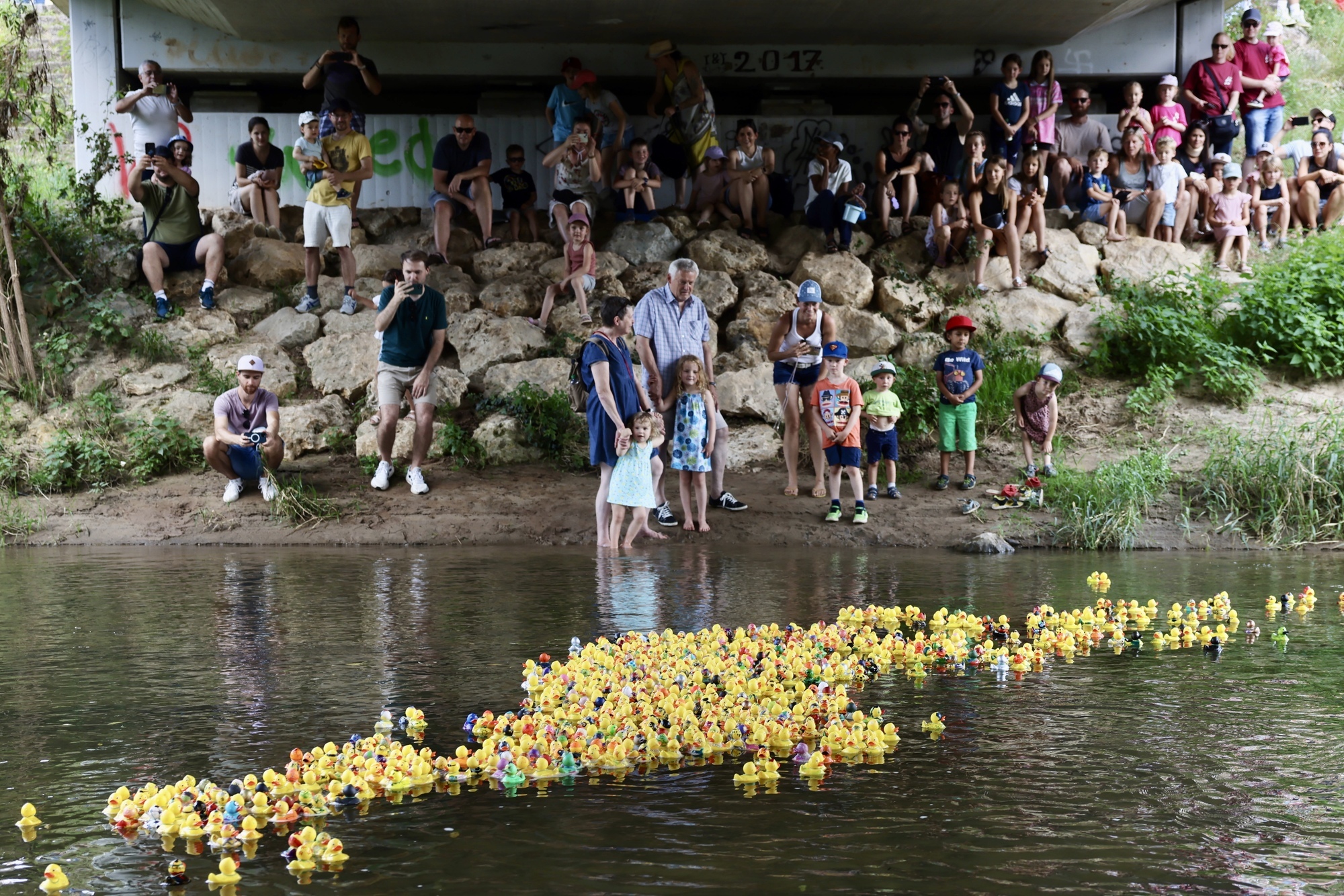 Samstagnachmittag, 14.30 Uhr, in Plüderhausen: Mitglieder der Freiwilligen Feuerwehr stehen in der Rems, vor ihnen 1000 quietschgelbe Plastikenten. Das Netz, das sie bisher daran gehindert hat mit der Strömung zu schwimmen, wird nach oben gehoben und los geht’s unter dem Jubel der vielen Zuschauer, die jetzt alle hoffen, dass ihre Rennente als Erstes den Weg von der Mittleren Brücke zur Heuseebrücke zurücklegt.
