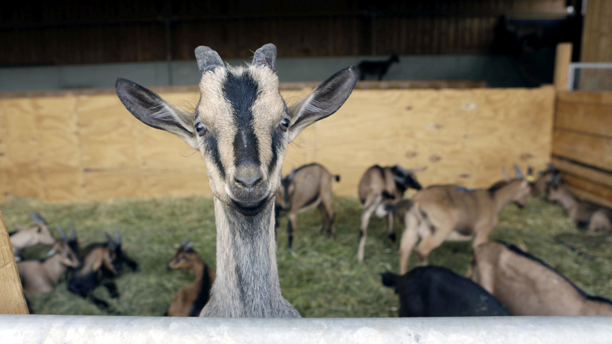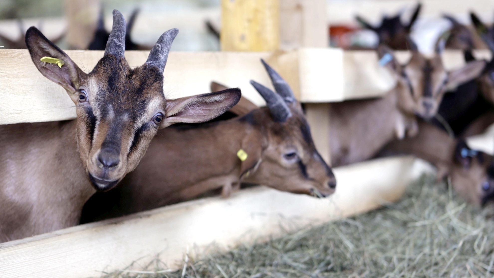Neugierig sind die meckernden Gesellen, und zutraulich. Auf der Weide knabbern sie am Hosenbein von Simon Kohl, und wenn der 33-Jährige am Gatter im Stall steht, kommen sie hurtig näher und lassen sich streicheln. „Das sind jetzt die Milchziegen“, stellt der Besitzer seine aufgeschlossenen braunbefellten Damen vor. 54 von ihnen stehen im weiträumigen Stall. Wenn sie wollen. Über eine Rampe können die Tiere auch ins Freie. Zusätzlich zu den 54 milchgebenden Ziegen gibt es Bock-Kitze und junge Ziegen, die zur Zucht gehen. Vor dem Stall auf der Wiese steht zudem ein kamerascheuer Zuchtbock mit mächtigen Hörnern.
