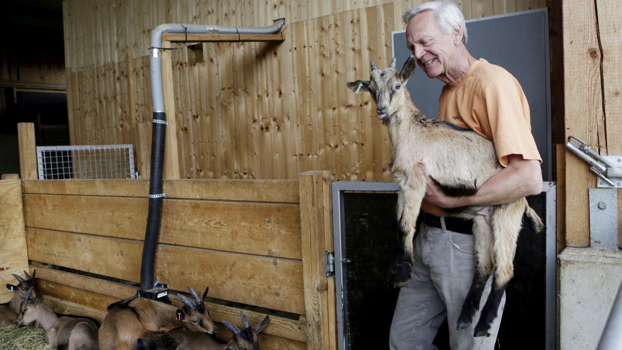 Der Stall bietet viel Platz, luftig ist es hier, und es riecht kein bisschen nach Ziege. „Das Stallklima ist wichtig bei der Ziege“, sagt Ekkehard Kohl, der seinem Sohn Simon auf dem Schautenhof hilft. „Der Stallgeruch geht in die Milch über. Wir haben hier überhaupt keinen Stallgeruch. Die Milch schmeckt entsprechend neutral.“