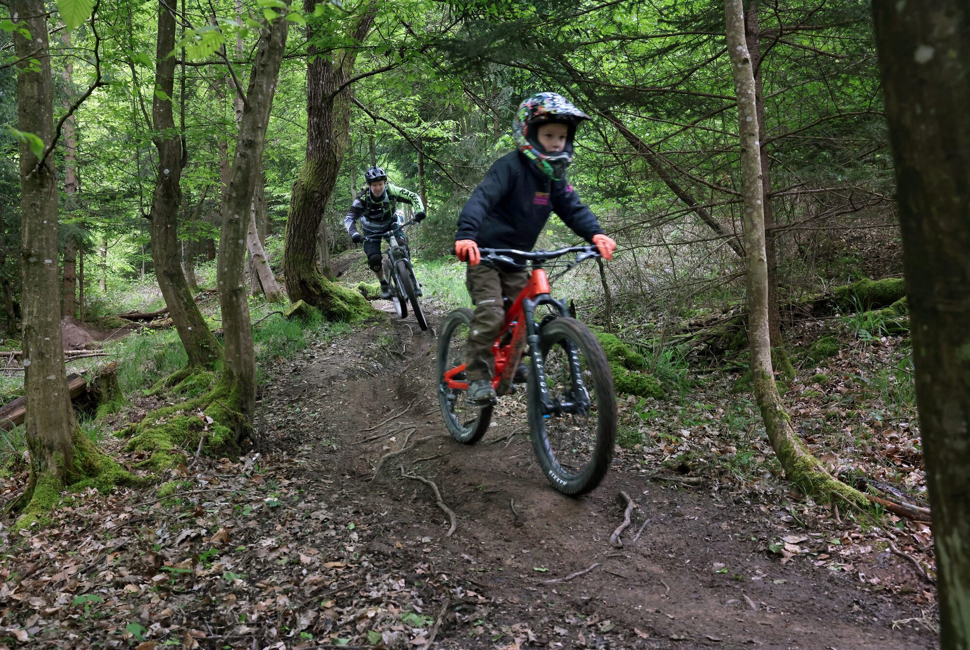 Stille Forststraßen führen durch den Wald oberhalb vom Plüderhäuser Aichenbachhof mitten hinein in den frühlingshaft hellgrünen Laubmischwald. Bis es plötzlich wuselt. Von Menschen. Mountainbike fahrenden Menschen. Am Tag der Eröffnung des legalen Mountainbike-Trails haben es sich zahlreiche Fahrradbegeisterte nicht nehmen lassen, gleich zu Beginn dabei zu sein, um eine erste Testrunde zu drehen.