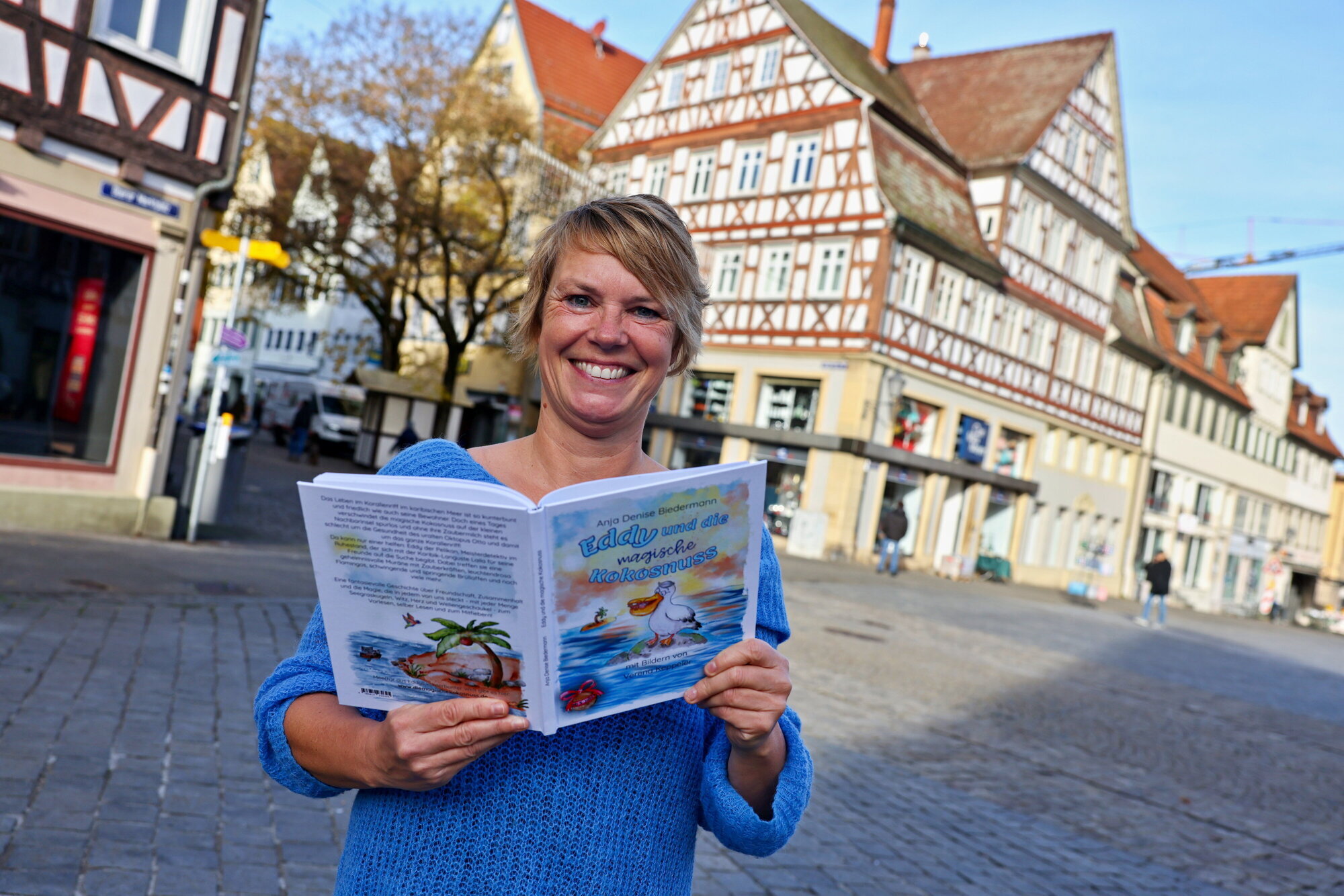Plüderhausen. Die klitzekleine Insel gibt es wirklich. Allerdings ist sie nicht ganz so klein wie im Buch und es steht auch mehr als nur eine Kokospalme drauf. Anja Biedermann lacht. Die gebürtige Plüderhäuserin hält ihr erstes Kinderbuch in der Hand, freut sich wie Bolle, erzählt, wie sie auf die Idee kam, „Eddy und die magische Kokosnuss“ zu schreiben und welch langen Weg die Geschichte bis zur Veröffentlichung zurückgelegt hat.