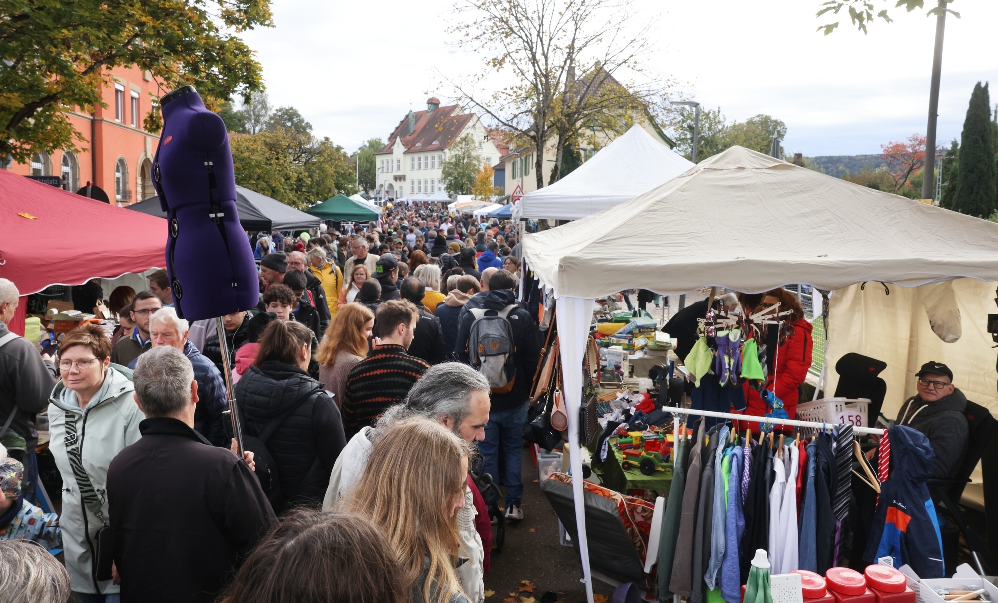 Schon beim offiziellen Beginn des inzwischen 40. Trödel- und Flohmarkts am Sonntagmorgen um 11 Uhr herrschte in Plüderhausen reges Treiben. Großes Interesse entlang der über 300 Stände von Privatanbietern, Vereinen, Initiativen und bei den offenen Geschäften. Eine Stunde später gab es dann schon ein sehr dichtes Geschiebe und stellenweise fast kaum mehr ein Durchkommen. Ein bummelnd- schlenderndes Schnäppchen-Gestöber mit einer gefühlten Höchstgeschwindigkeit von 50 m/h.