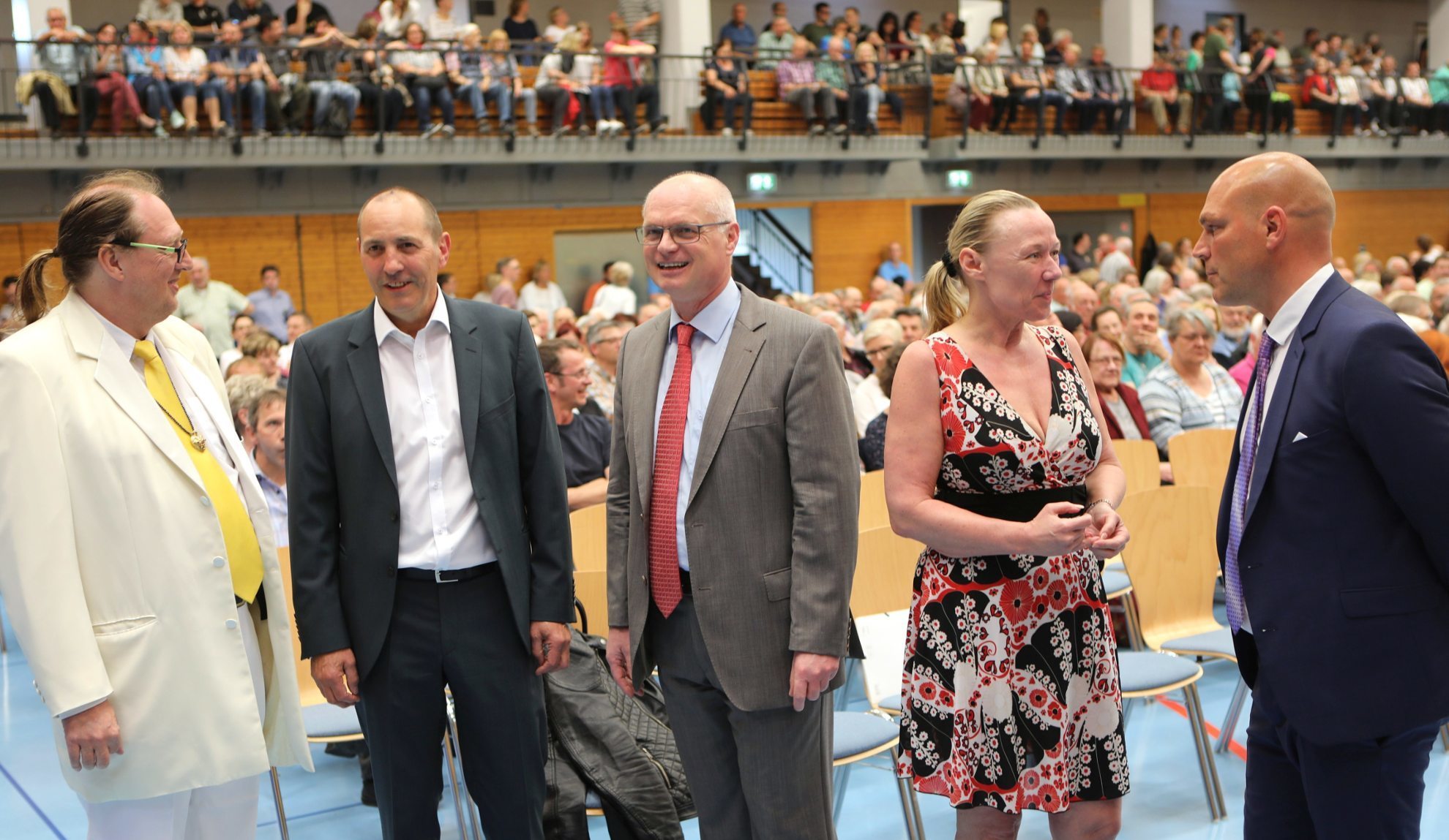 Als Erster trat Reinhard Molt auf. Er las seine Rede vom Blatt ab und kündigte an, er wolle zu einem „informativen Abend beitragen“. „Denn für Selbstdarstellung ist mir das Amt und diese schöne Gemeinde viel zu schade.“ Sein Versprechen hielt er insofern, als seine Rede tatsächlich sehr nüchtern und ohne irgendwelche Überraschungen oder Besonderheiten daherkam.