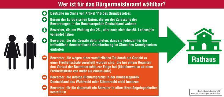 „Der freie Zugang zum Amt des Bürgermeisters hat in Baden-Württemberg eine lange Tradition und ist ein hohes demokratisches Gut, dem keine unverhältnismäßigen Hürden entgegengestellt werden sollten“, sagt Carsten Dehner, ein Sprecher des baden-württembergischen Innenministeriums. Daher verzichte die Gemeindeordnung darauf, konkrete Anforderungen an die Eignung der Bewerber zu stellen.