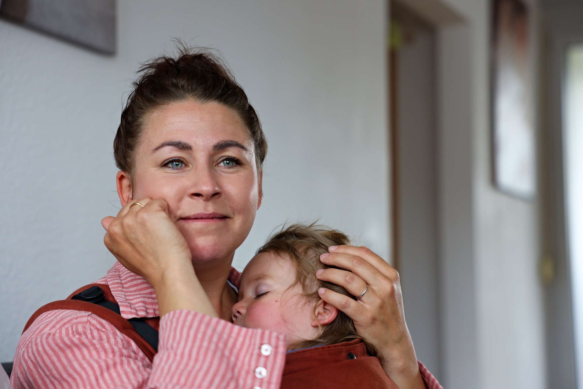 Remshalden-Grunbach. Amelie, eineinhalb Jahre alt, hat ihr Lockenköpfchen warm auf die Brust ihrer Mutter Anja Gustke gelegt. Schwitziges Bäckchen auf Schlüsselbein. Sie schläft den schönsten aller Mittagsschläfchen. In der Trage, ganz nah am Herz der Mutter. Und die erzählt voller Liebe, Sorge und Entschlossenheit. Davon, wie sie darum kämpfen muss, die Sprache ihrer Kinder lernen zu dürfen, damit sie ihnen helfen kann, die Welt zu verstehen. Und sie berichtet von ihrer