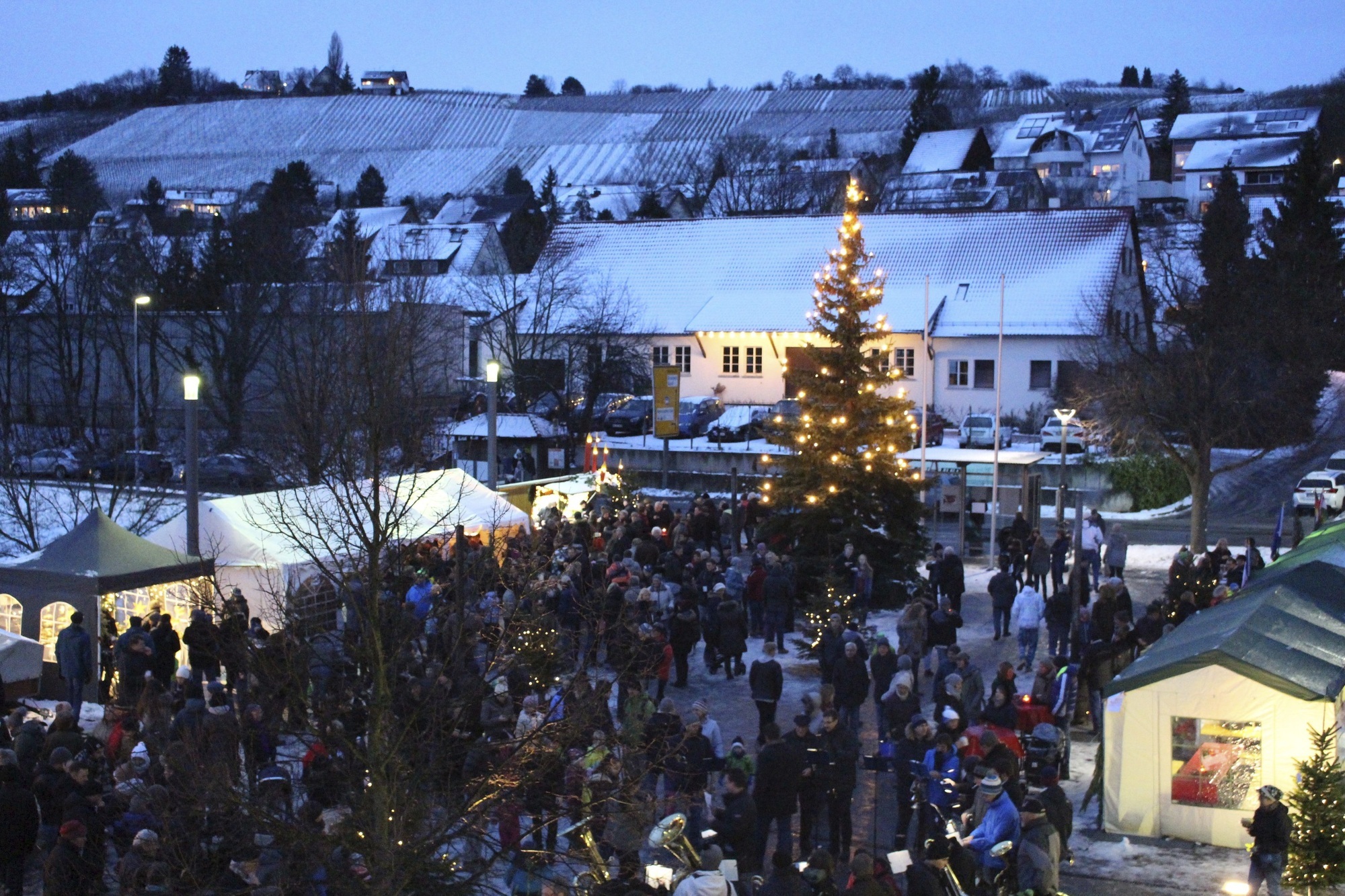 Auf dem Marktplatz und im Rathaus werden mehr als 40 weihnachtlich geschmückte Stände aufgebaut. Das Angebot der Vereine, Organisationen und Hobbykünstlern ist vielfältig und lädt sowohl zum schlemmen und genießen, wie auch zum