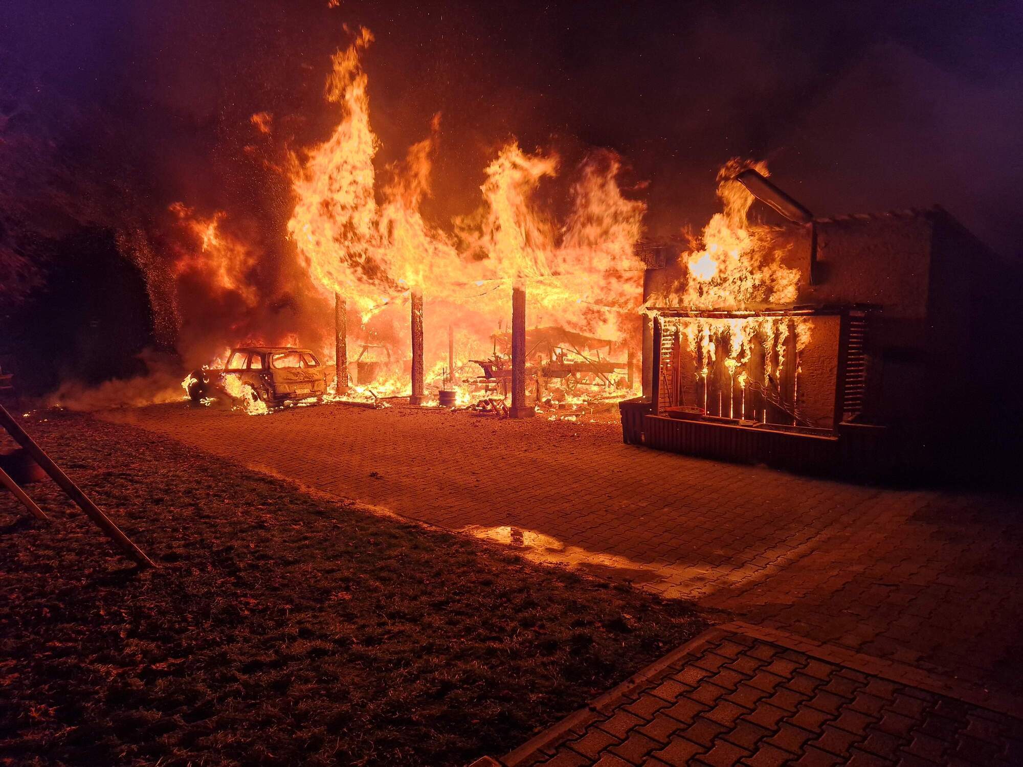 Im Rudersberger Ortsteil Schlechtbach ist am Donnerstagabend (22.12.) die Scheune eines landwirtschaftlichen Betriebs samt den dort geparkten Fahrzeugen und abgestellten Geräten von einem Feuer zerstört worden. Als die Nachbarn Landwirt Gerhard Klotz rausklingelten, stand das Gebäude bereits lichterloh in Flammen. Es blieb ihm nur, mit Hilfe der Nachbarn die Tiere aus dem benachbarten Stall in Sicherheit zu bringen. Die Feuerwehr sei gerade noch rechtzeitig gekommen, sagt er am Morgen