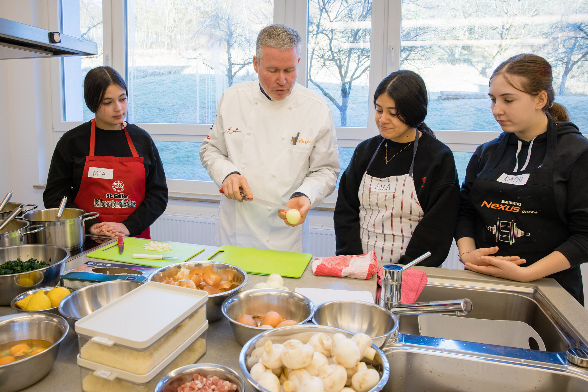 Rudersberg. Belgische Schokolade, Vanilleschoten und Tonkabohnen, aber auch Rosmarin, Knoblauch und Speck: Alles liegt in der Schulküche in Rudersberg bereit. Damit daraus auch ein ordentliches Mahl entsteht, bekommen die Siebtklässlerinnen professionelle Anleitung: Jörg Ilzhöfer, der in Stuttgart eine Kochschule betreibt, hat sich einen Vormittag dafür Zeit genommen.