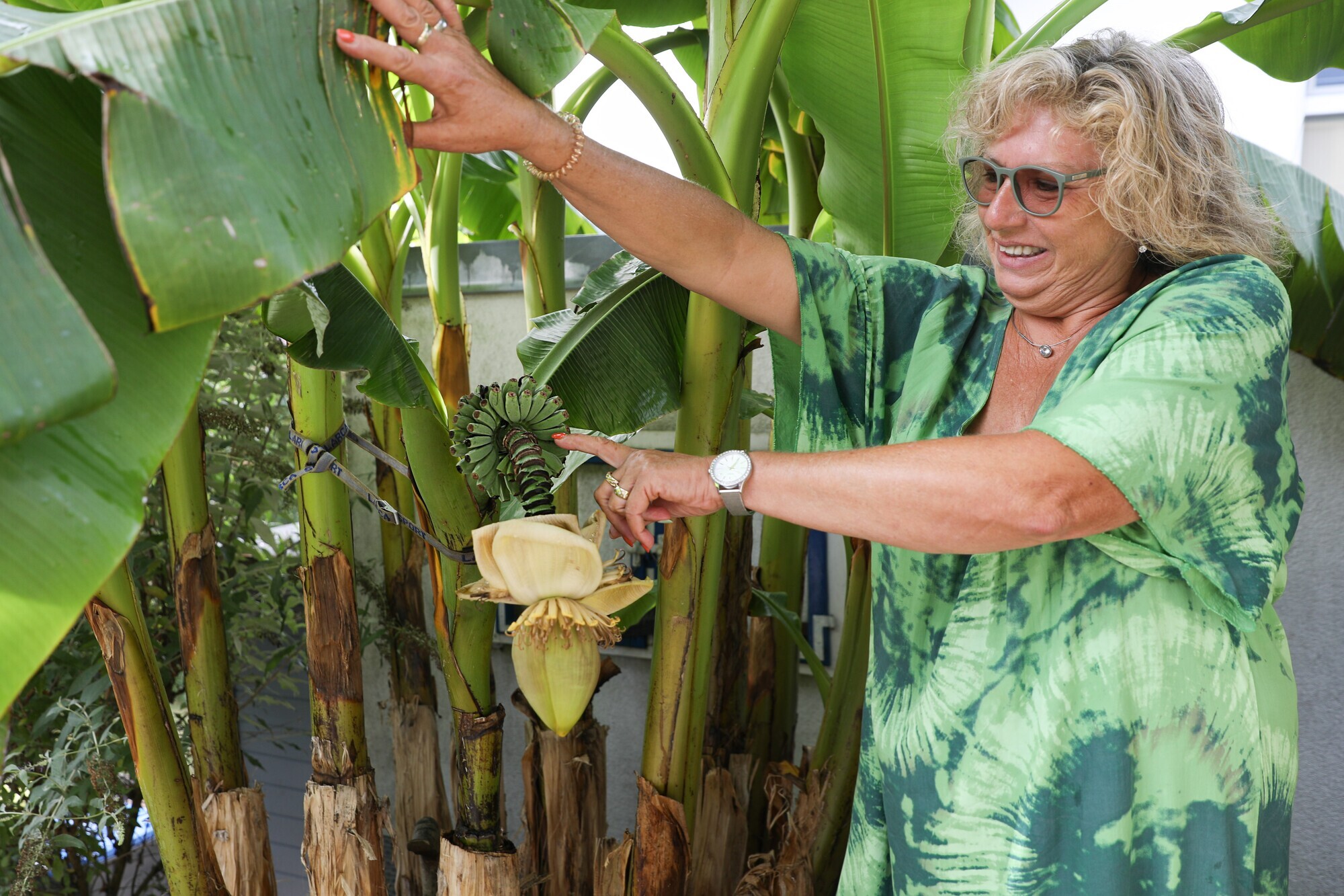 Während viele Hobbygärtnerinnen und -gärtner Äpfel oder Birnen im Garten haben, hat Familie Ziegler aus Rudersberg einen fünf Meter hohen Bananenbaum zu Hause.