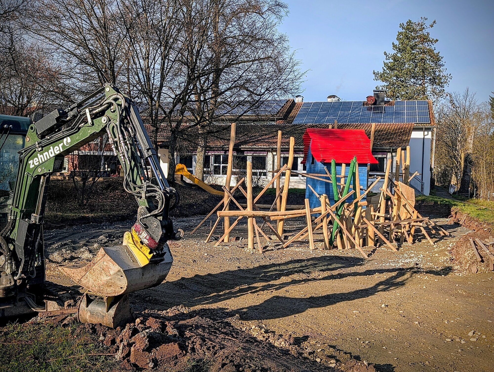Seit wenigen Tagen nimmt der Spielplatz an der Grundschule Gestalt an. Dieser befindet sich zwar streng genommen auf dem Gelände der