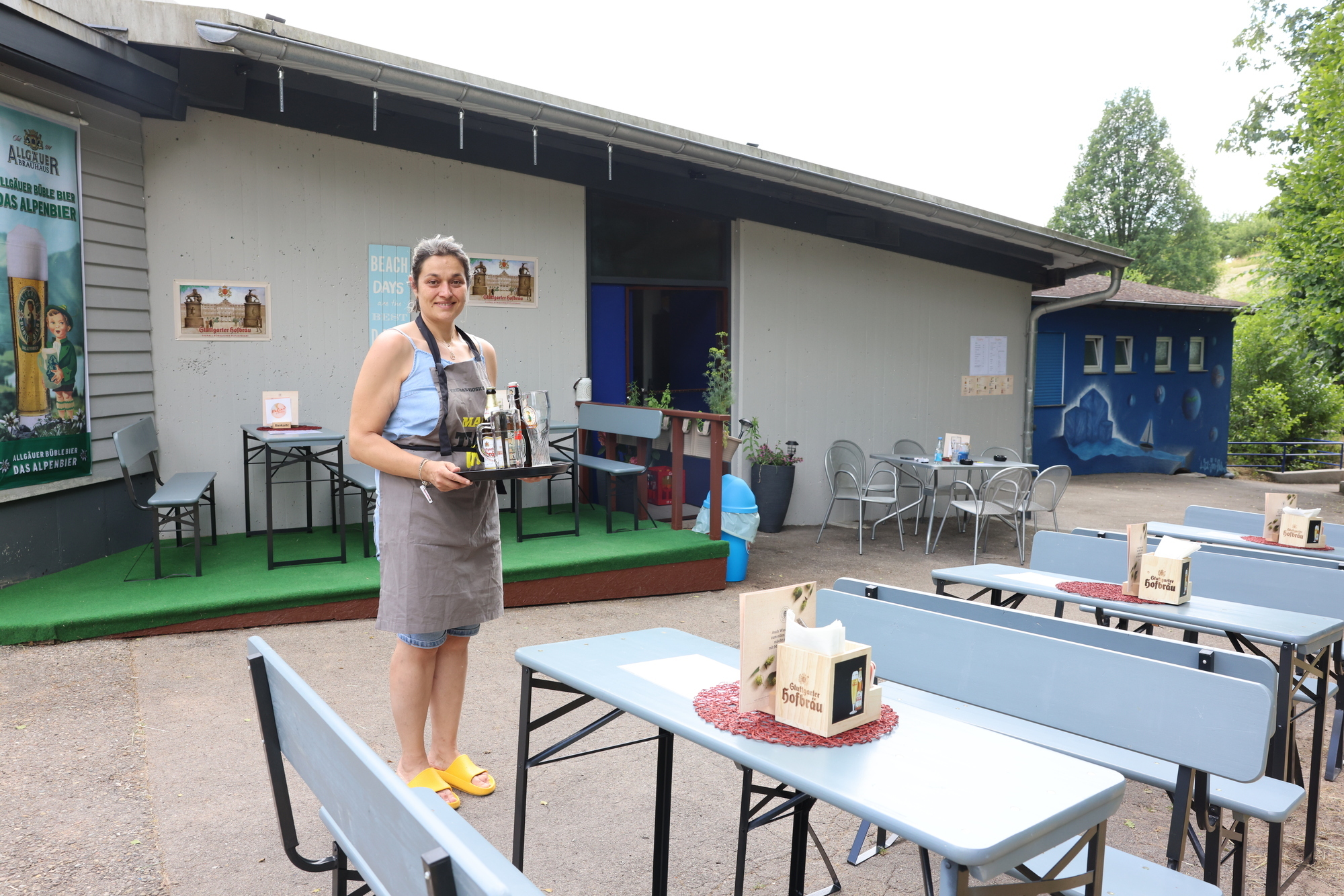 Das Freibad in Steinenberg ist weiterhin zu, es ist nicht ganz klar, wann es öffnen kann, die Sanierungsarbeiten an den Becken laufen noch. Maria Cura hofft, dass sich das bis Ende dieses Monats ändert und sie dann die Badegäste bewirten kann. Sie hat zu dieser Saison den Freibadkiosk neu übernommen. Weil sie nicht länger warten wollte, hat sie jetzt schon geöffnet, man kann bei ihr auch ohne Freibadbesuch im schön in der Natur gelegenen kleinen Biergarten Gerichte wie Wurstsalat, Pommes,