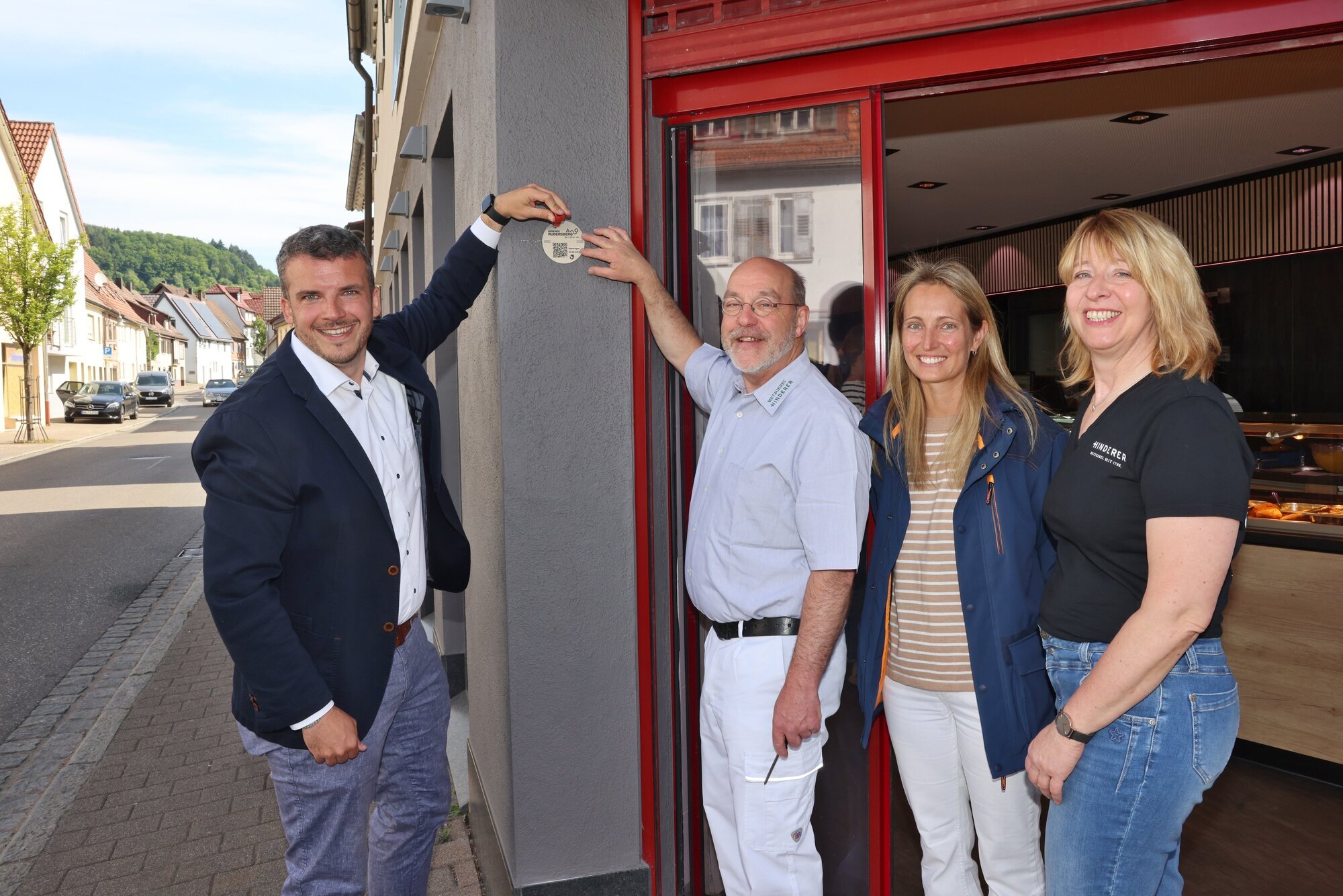 Die erste ist seit diesem Dienstag neben der Eingangstüre der Metzgerei Hinderer zu sehen. Der Laden wurde vergangenen Juni fast komplett zerstört. Und